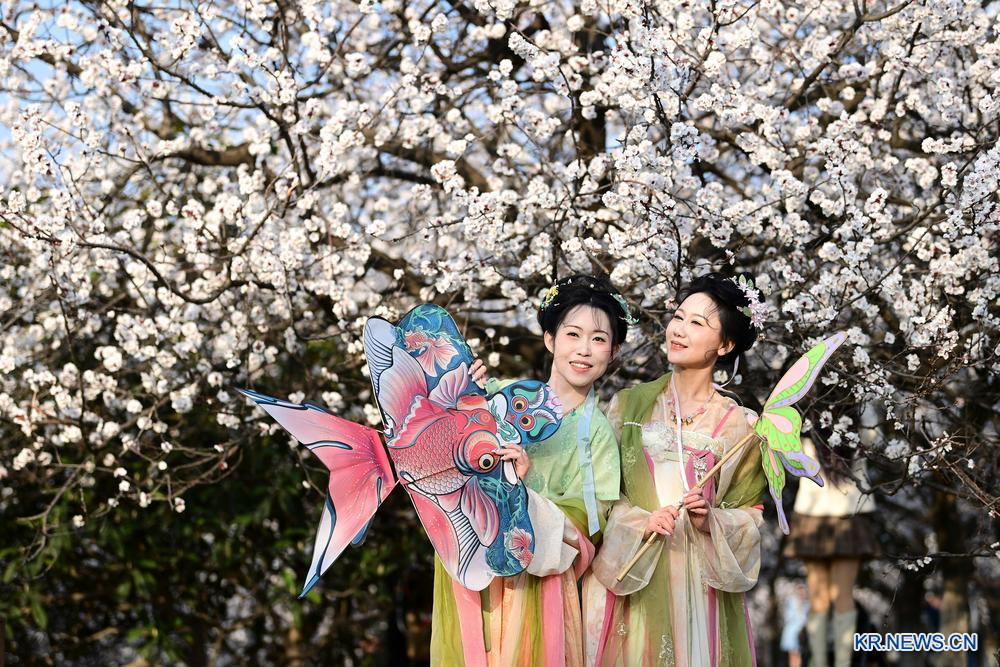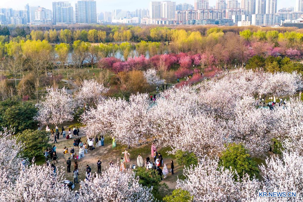 [신화망 중국 서안 3월 10일발] 최근 섬서성 서안시 대명궁 국가유적공원에 꽃들이 만개하자 많은 관광객들이 봄기운을 만끽하며 꽃구경을 즐겼다.