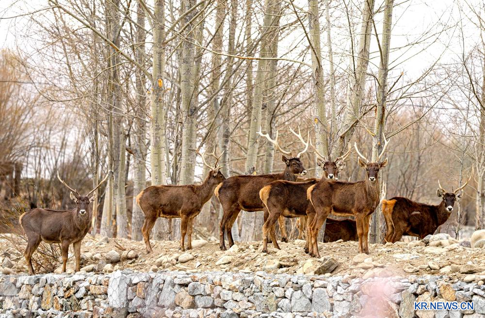 [신화망 중국 라싸 3월 17일발] 15일 서장자치구 산남시 내동구 결파촌에서 국가 1급 보호동물인 흰입술사슴이 먹이를 찾는 모습이 포착되였다. 현지의 생태환경이 지속적으로 개선되고 생물다양성 보호가 강화되면서 흰입술사슴의 개체수가 점차 늘어나고 있는 것으로 나타났다.