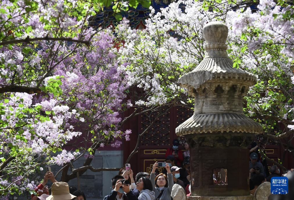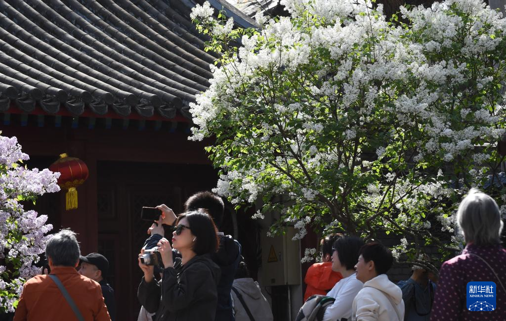 近日,北京法源寺内的丁香竞相绽放,阵阵幽香扑面而来,吸引众多游客前来观赏拍照。坐落在北京西城的法源寺始建于唐贞观十九年,是北京城内历史悠久的一座古刹。