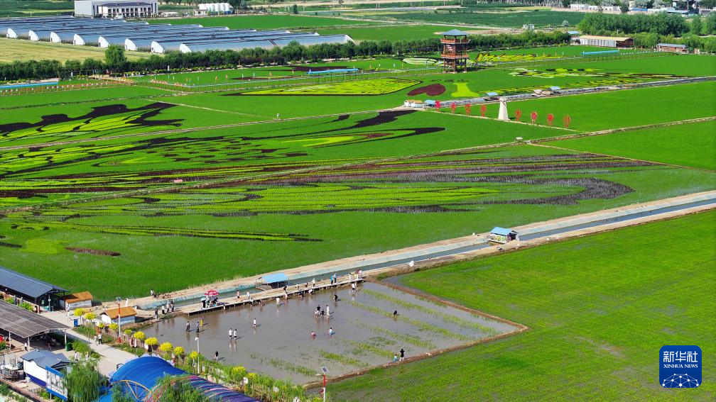 近日,在位于宁夏银川市贺兰县的稻渔空间乡村生态观光园里,巨幅稻田画进入最佳观赏期,吸引游客前来观赏。