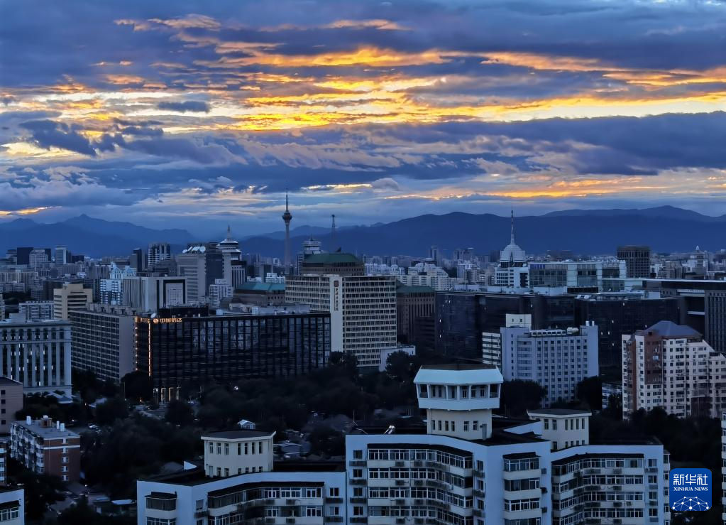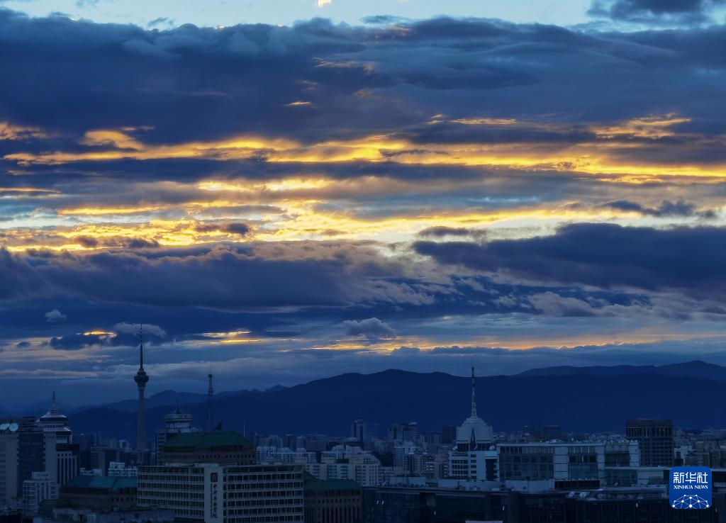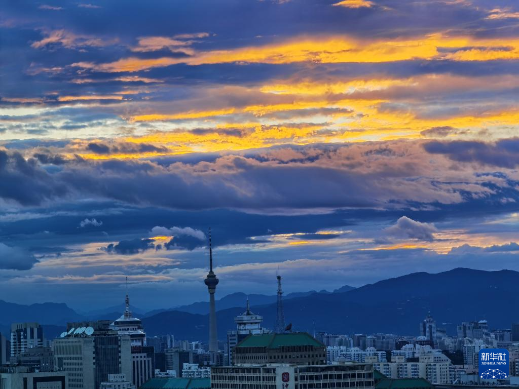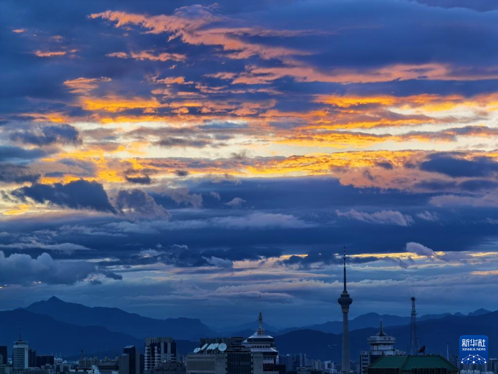 8月12日傍晚,北京出现美丽晚霞(手机照片)。