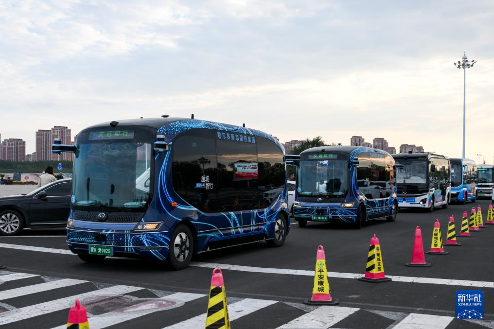 这是9月19日拍摄的鄂尔多斯市康巴什区街头待发的无人驾驶公交车。