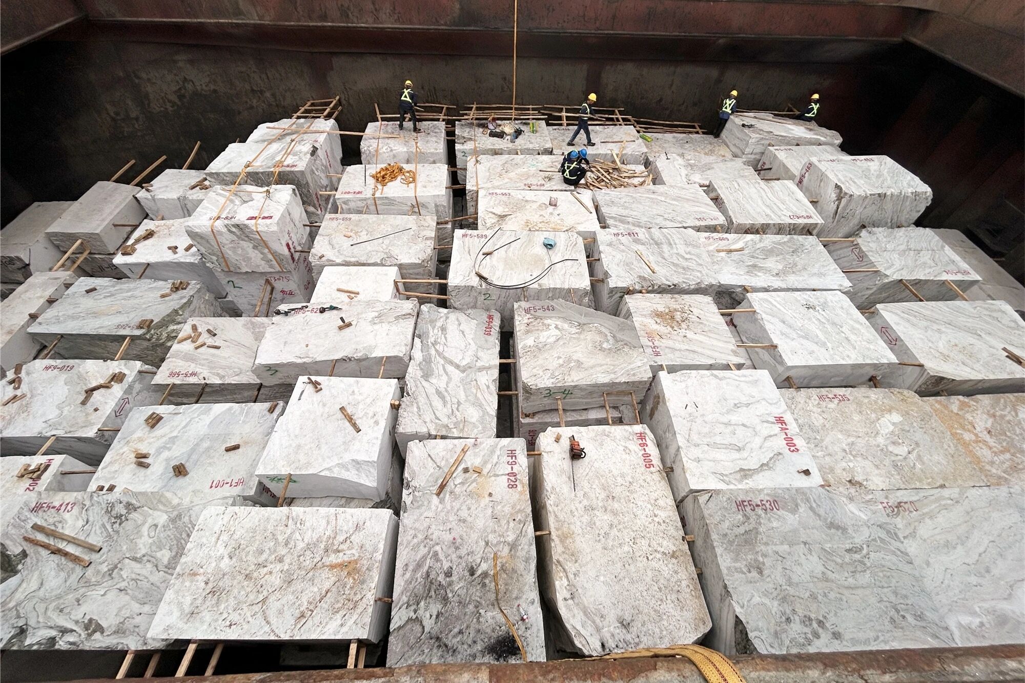 杂货码头分公司积极推动船方、货主、港方建立“服务共同体”,将客户诉求贯穿方案制定全过程,并根据船方提出的船舶载货与稳定性要求,以及货主对石材防磕碰、防受潮等需求,结合经验优化流程、调配设备,确保人、机、料高效衔接。