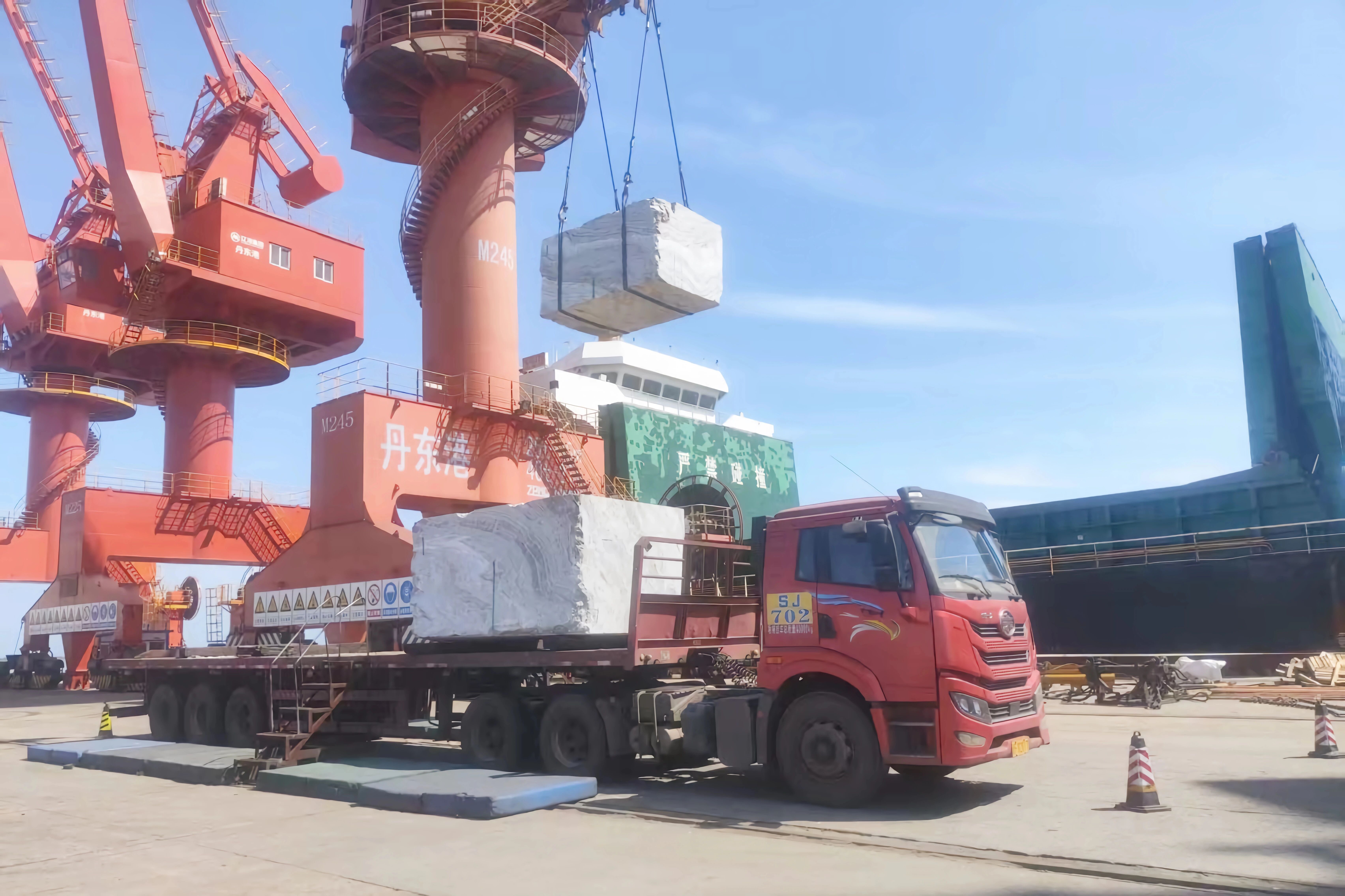本次石材规格差异较大,部分长尺寸石材在吊装作业中易断裂。分公司创新采用分货场、分方式作业模式,全程实现“零货损”。同时,依托辽港集团信息化管理平台,向客户实时共享作业进度,并按配载节奏调度车辆,为客户节省了综合物流成本,用专业服务为客户“降本增效”。