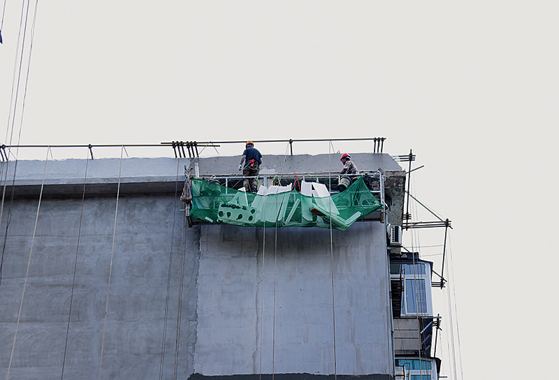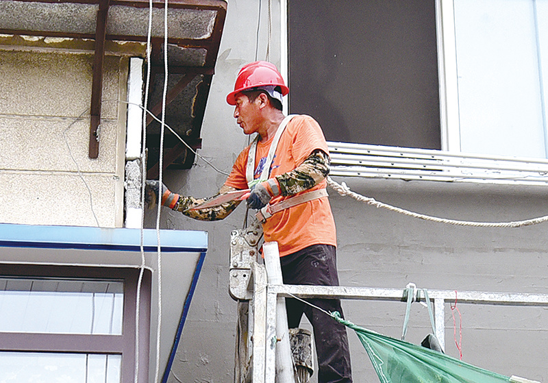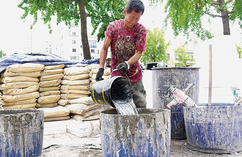 连日来,在我市各老旧小区改造现场,施工人员正加紧完善小区功能配套设施。在振兴区纤维街道福春四小区改造现场,施工人员正进行墙面保温作业。目前,小区地下管网改造已基本完成,施工人员正在进行收尾工作。车辆在施工现场对地面进行平整和夯实处理,确保项目早日完工。