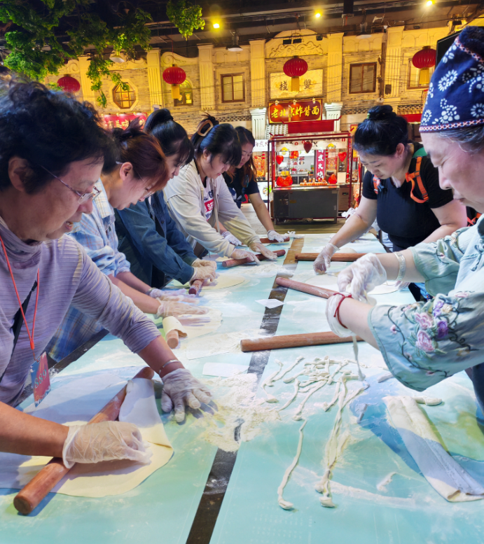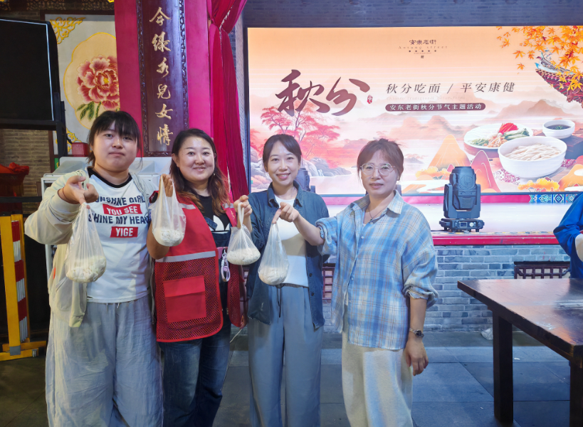 秋分至,秋意浓。9月23日秋分节气当天,临江街道工人村社区在安东老街大舞台热闹开展民俗主题活动,以“秋分吃面 平安健康”为主题,邀请社区居民亲手参与从和面、揉面到煮面打卤的全过程,在协作与分享中感受节气文化,传递邻里温情。