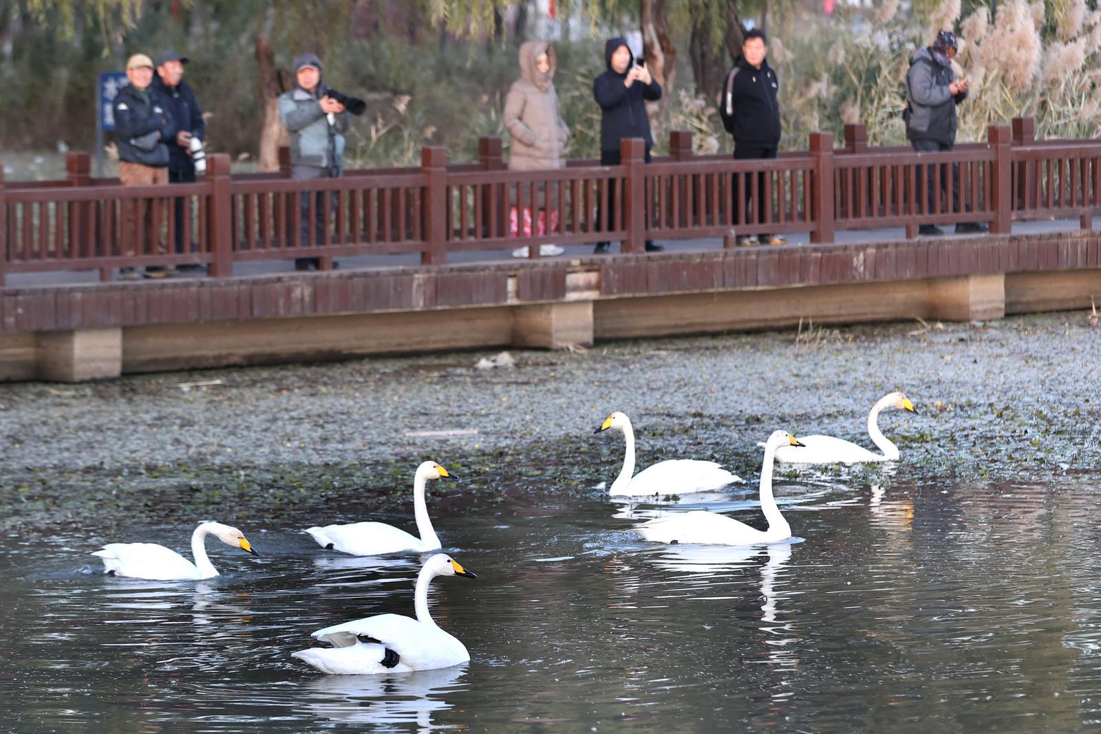 深秋时节,白天鹅活跃在朝阳市双塔区大凌河畔,成北方城市深秋时节里的一道别致生态风景线。10月27日,近30只白天鹅翔集在朝阳市双塔区大凌河畔,翩翩身影为大凌河畔增添了无限生机与活力。据介绍,白天鹅种群已在朝阳城区中心水域活跃了近10天左右,目前,种群数量在逐渐增多。