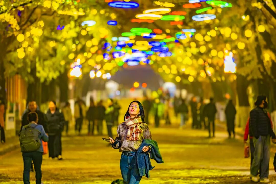 如今,夜赏银杏已成为丹东文旅新热点。“黄金大道”与城市烟火气交织,既展现了生态之美,更彰显了城市独特底蕴,成为深秋里最灵动、最动人的“城市名片”。