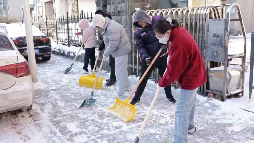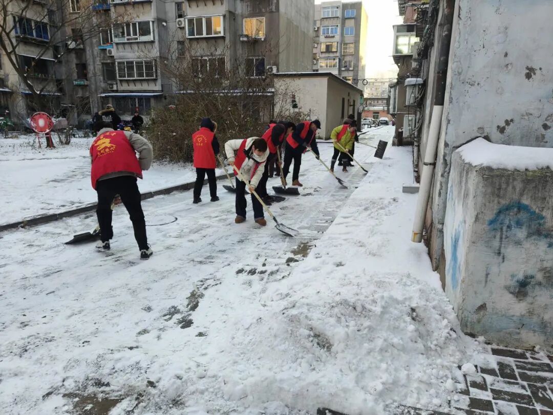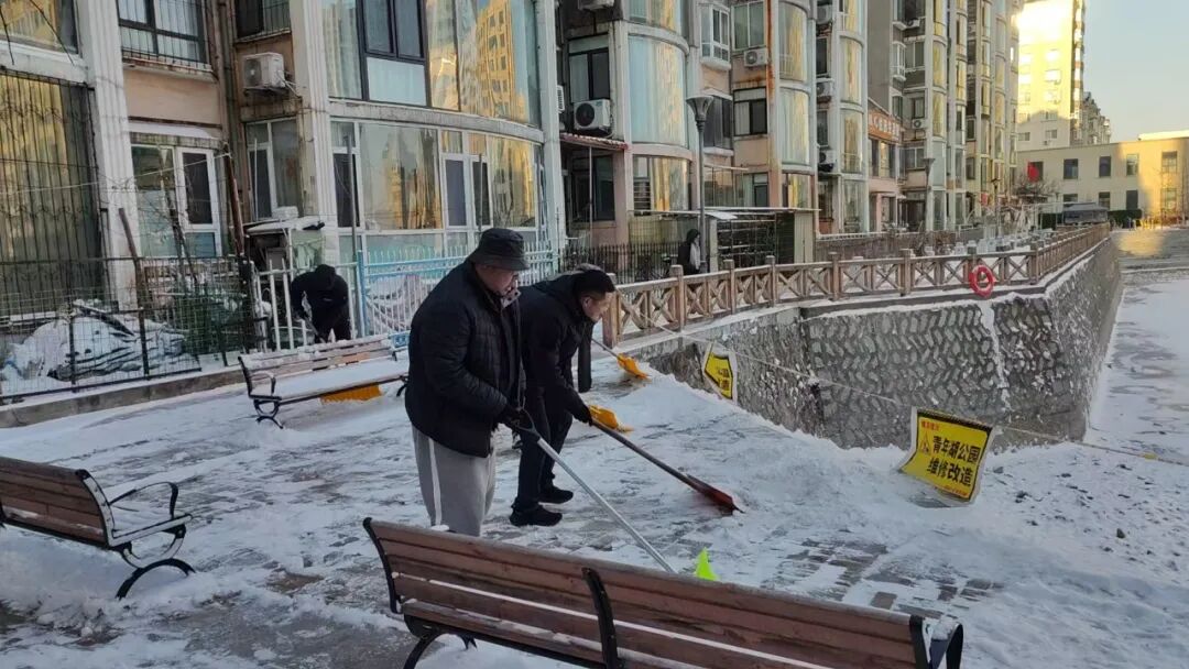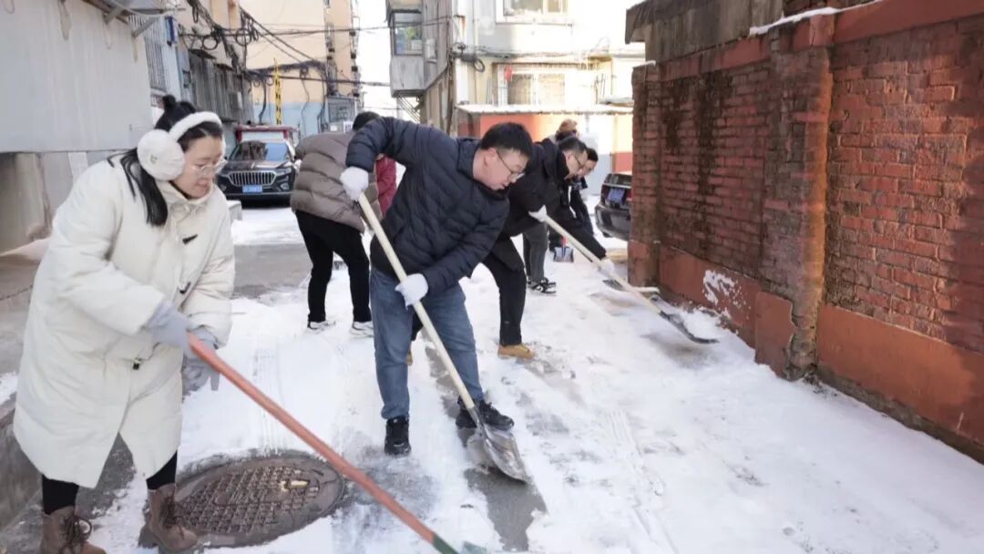 行动中,党员干部冲锋在前、作出表率,对小区院内、楼前通道、单元门口等出行关键区域的积雪进行集中清理。