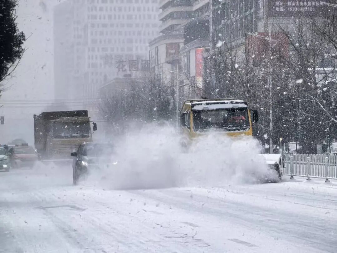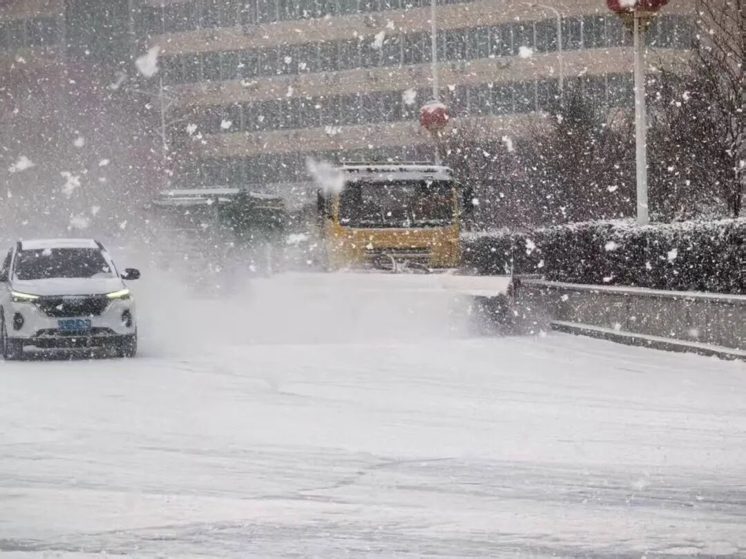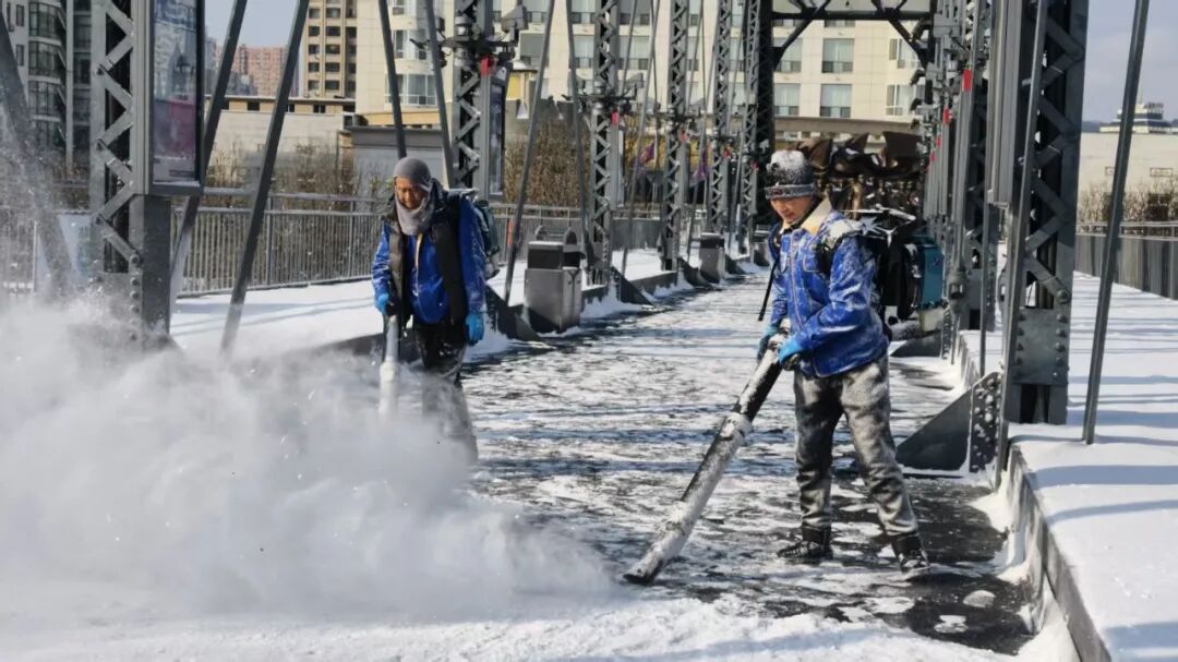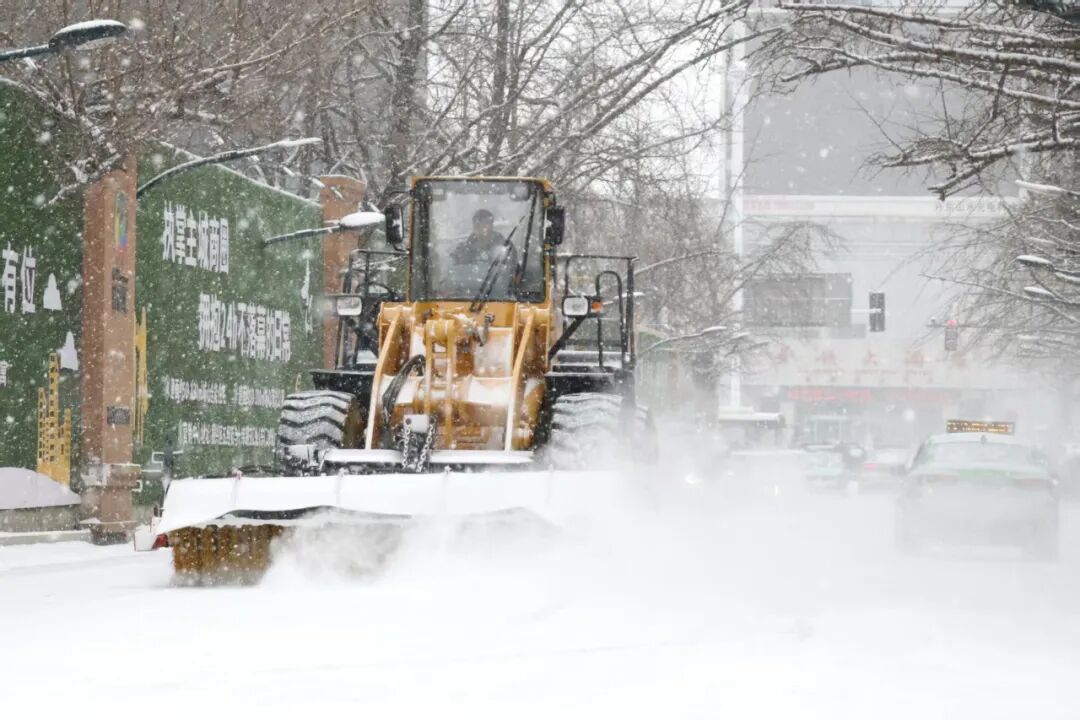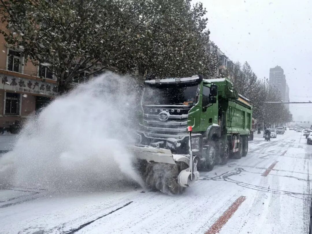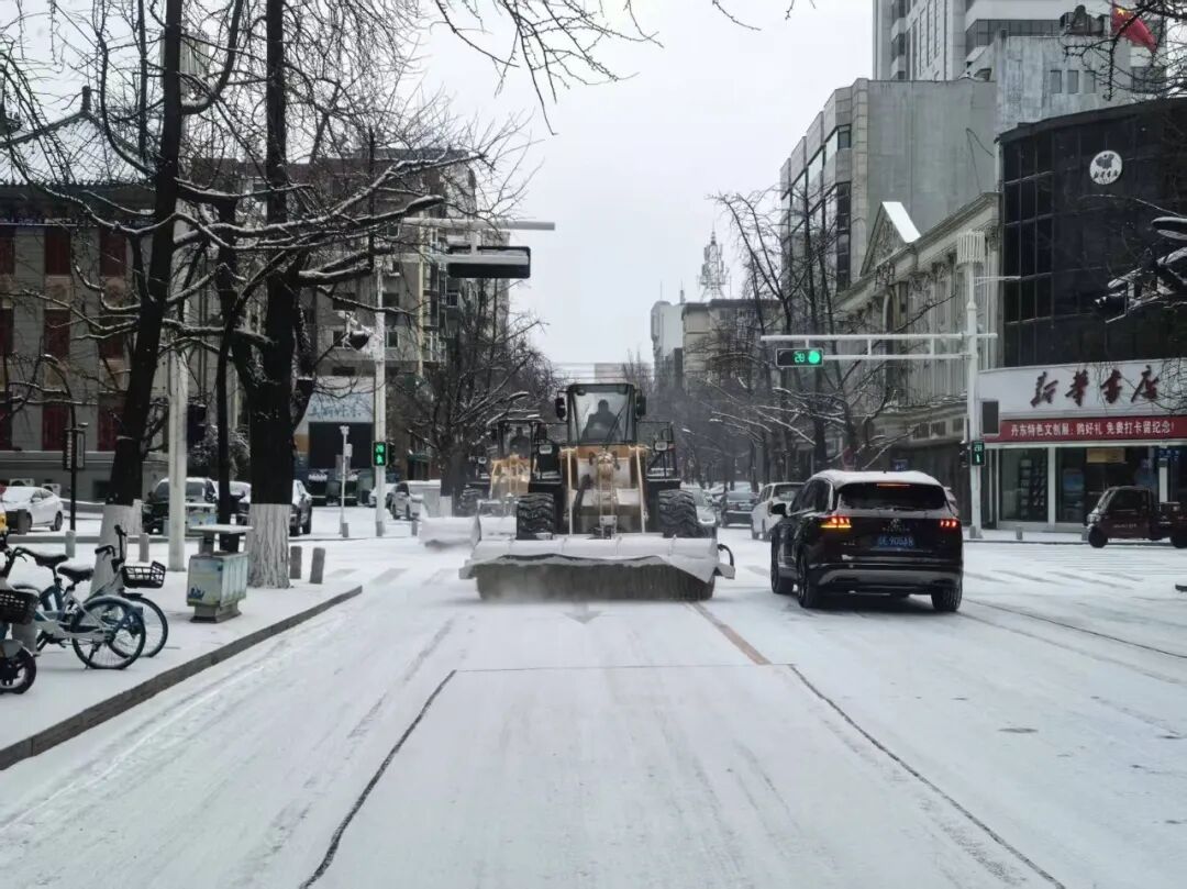 多台大型除雪设备陆续投入使用,与环卫工人密切配合,对主干道、桥梁、坡路等重点区域进行快速清理,确保道路畅通无阻。