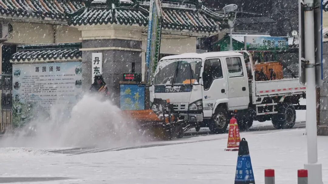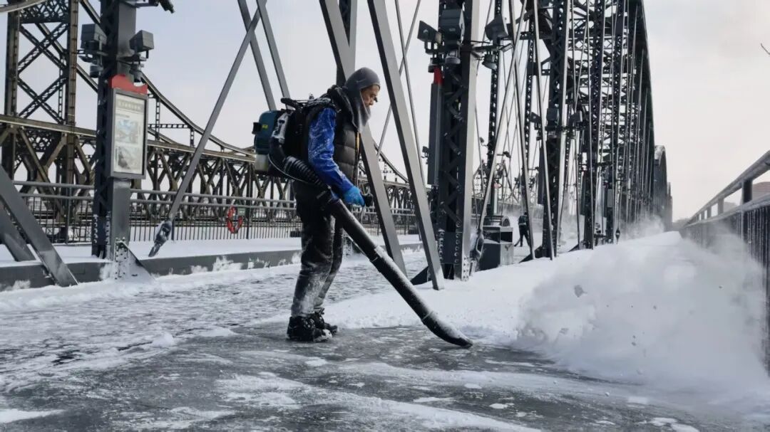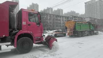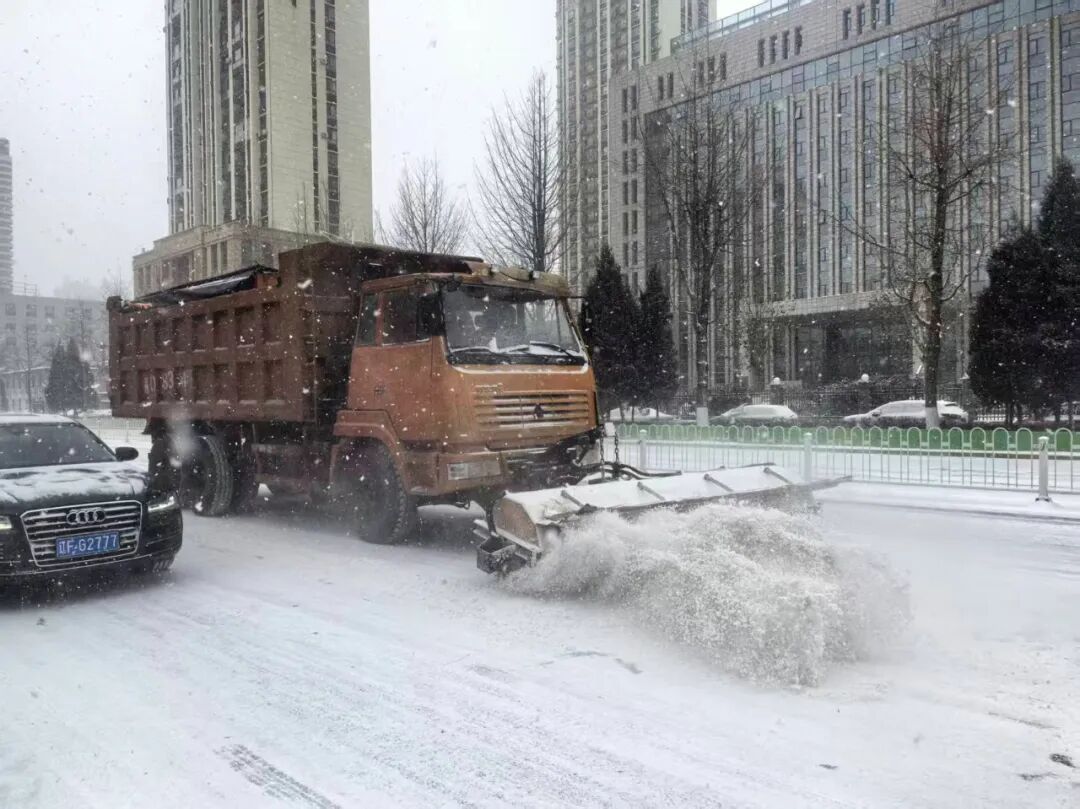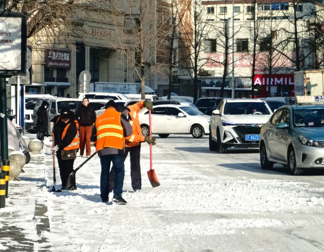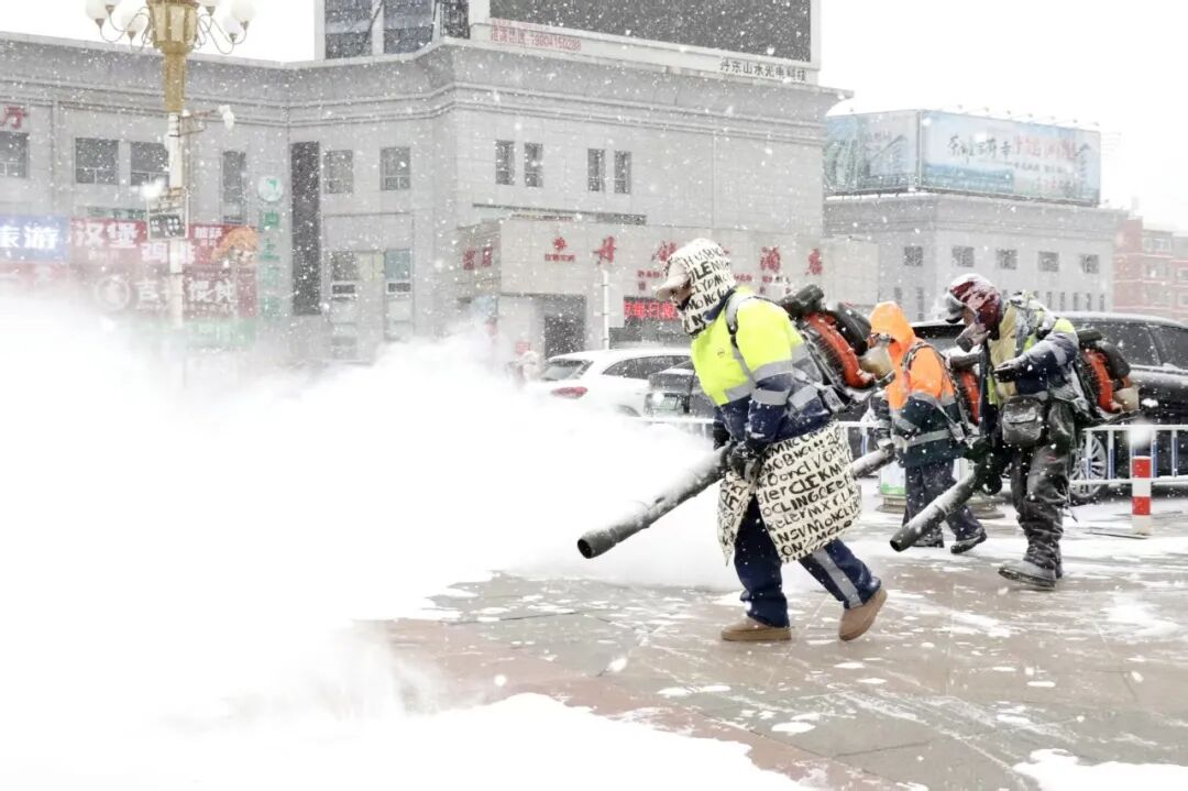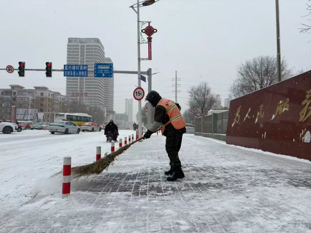多台大型除雪设备陆续投入使用,与环卫工人密切配合,对主干道、桥梁、坡路等重点区域进行快速清理,确保道路畅通无阻。