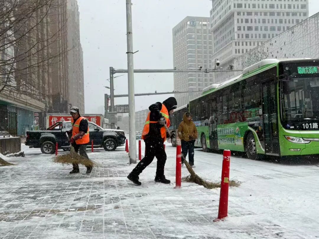 12月4日,丹东被一场降雪唤醒,这是立冬过后我市迎来的第二场降雪。各环卫单位紧急调配人员和设备,1500余名环卫人员迅速集结,奔赴各自负责的路段。
