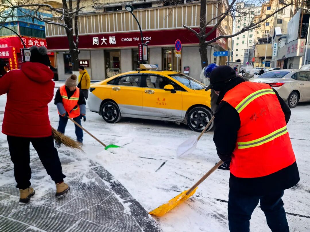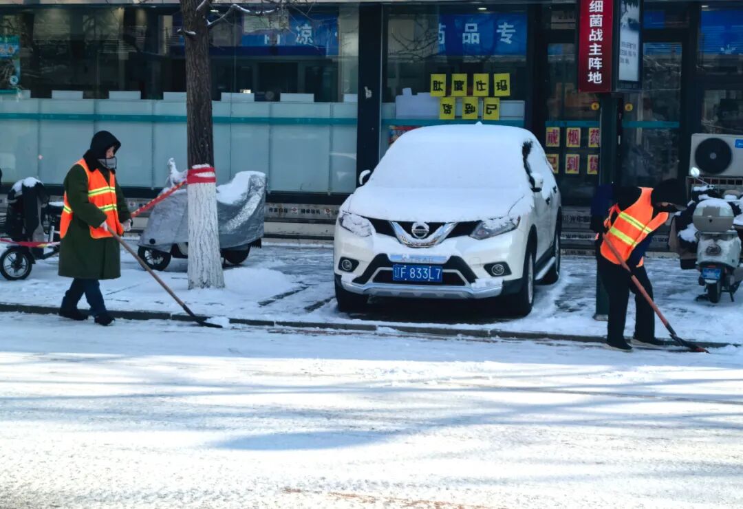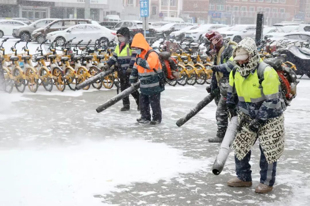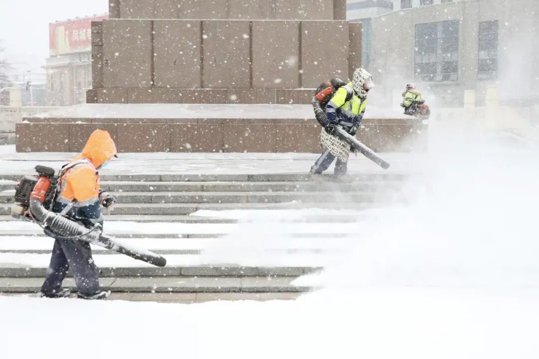 雪情就是命令,全市环卫系统立即启动应急响应,1500余名环卫工人迅速从晨扫切换为除雪模式,他们手持扫帚、小型吹雪机等工具对人行步道展开地毯式清理。23台融雪剂撒布车、29台推雪铲、59台滚刷车及其他设备共计473台即刻上路作业。