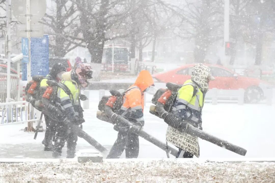 早6时许,城区上空率先飘起零星雪花,早已落实24小时值班制度的全市环卫系统迅速进入“备战状态”。在开展日常晨扫作业的同时,环卫人员同步开始准备小型吹雪机、推雪板等除雪工具,专业人员和车辆在主次干路、坡路桥梁随时待命,为应对可能升级的降雪筑牢防线。