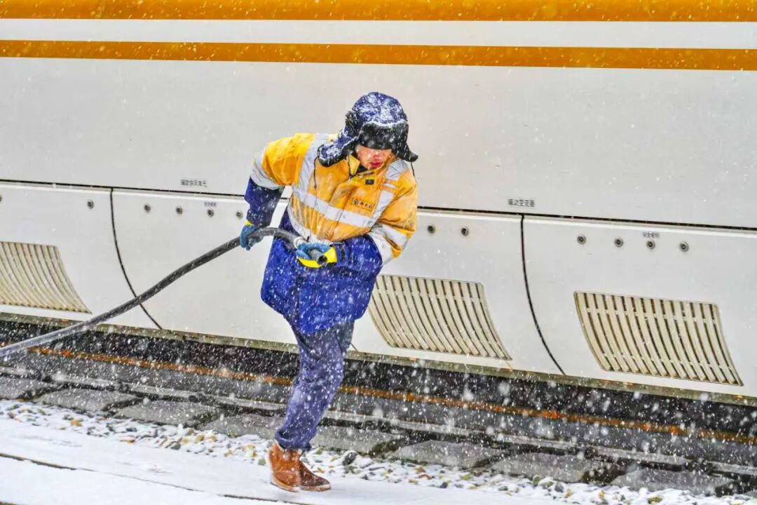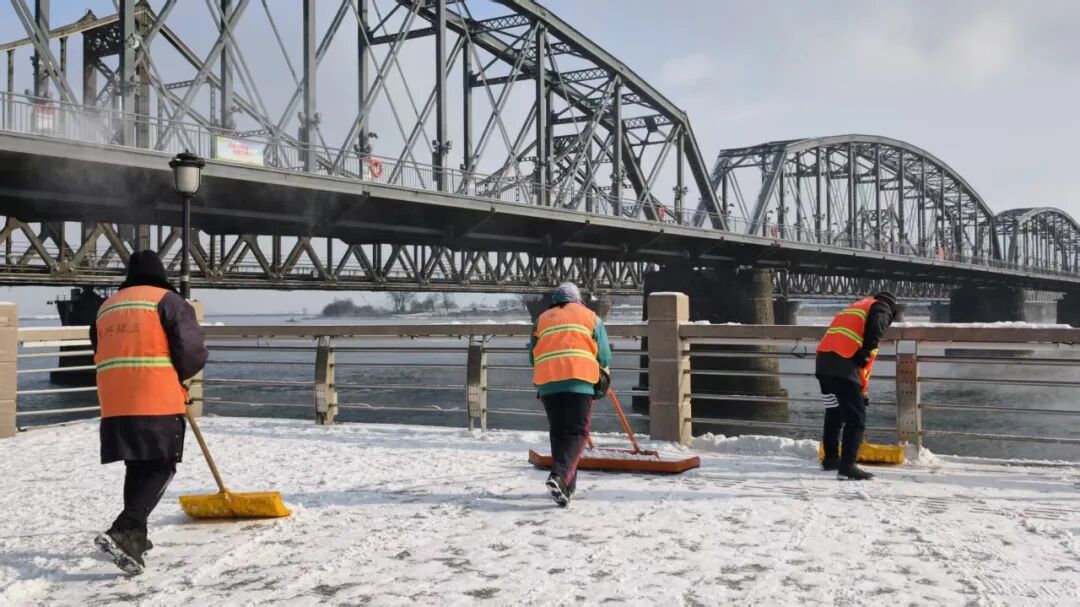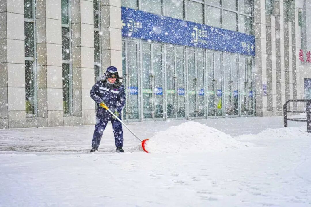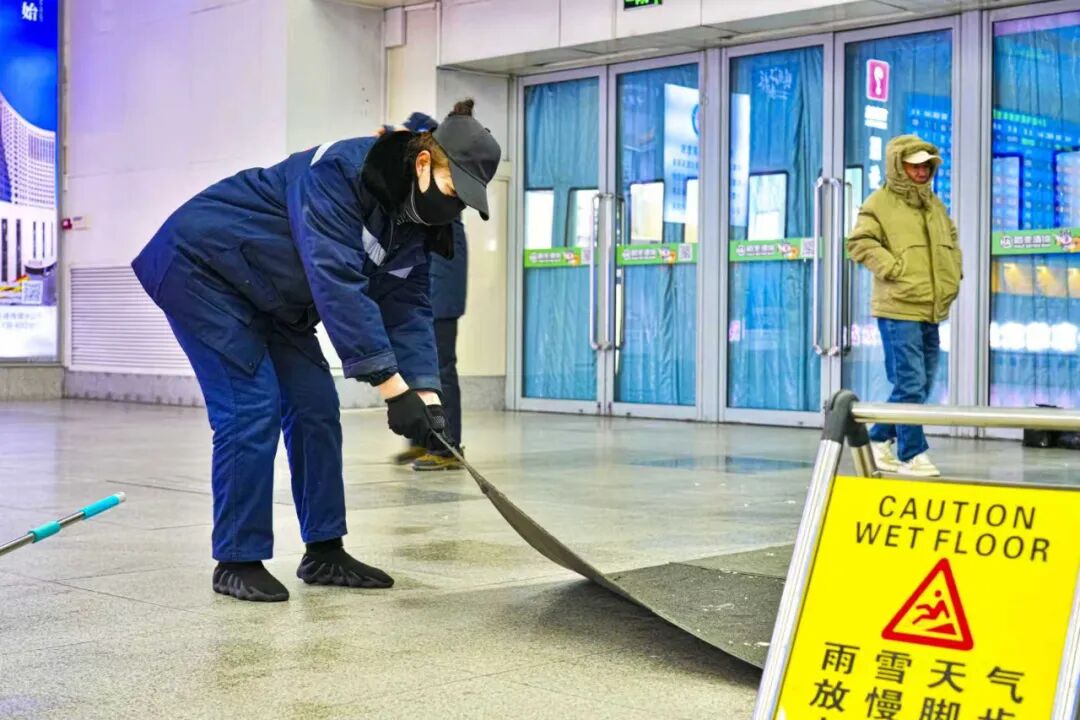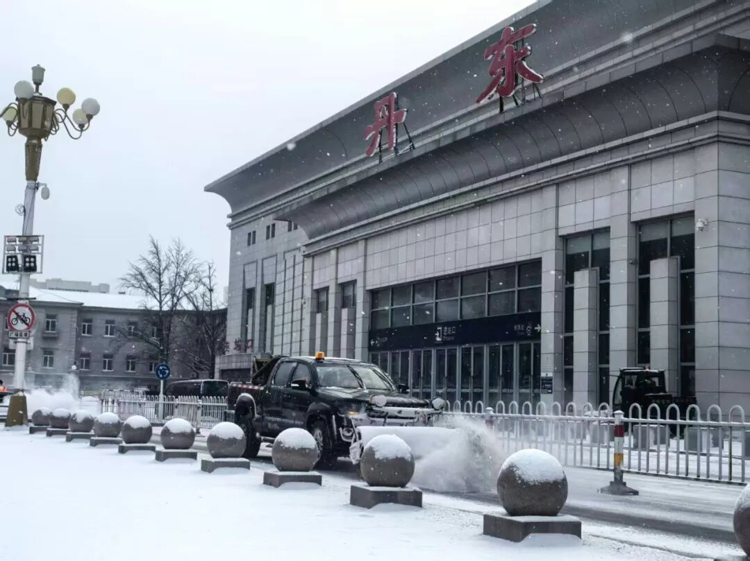 铁路丹东站同样以雪为令,迅速组织干部职工奔赴站前广场、进出站通道、站台、线路及道岔等关键区域,全力清扫积雪。同时在车站候车厅、检票口等人员密集区域及时铺设防滑垫,设置安全提示标识,安排专人引导旅客有序进出站。一系列举措有效防范了积雪积冰带来的安全隐患,确保铁路运输安全有序畅通,保障旅客出行平安。