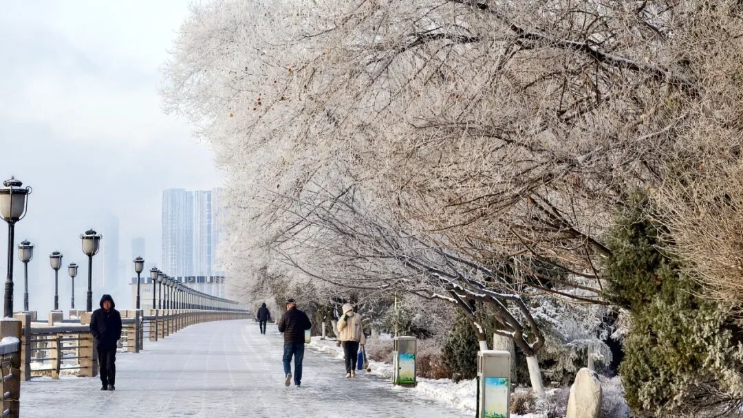 “早上起来看到窗外一片洁白,还以为下雪了,仔细一看原来是雾凇,太美了!”家住滨江路附近的李女士兴奋地说。许多晨练的市民纷纷停下脚步,用手机记录下这一难得的美景。