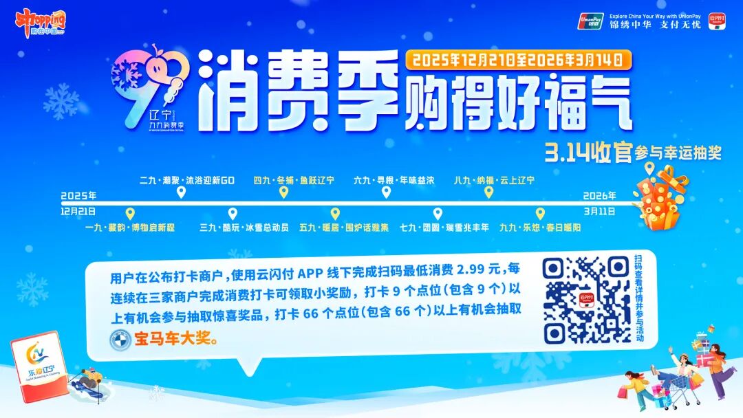 本次丹东“九九消费季”促消费活动,深度融合“数九”民俗与现代消费理念,串联冰雪旅游、民俗文化、数字电商等多重业态,助力将冬季“冷资源”变“热经济”。81天,“每日有活动、每周有亮点”,为市民与游客带来全场景消费体验。