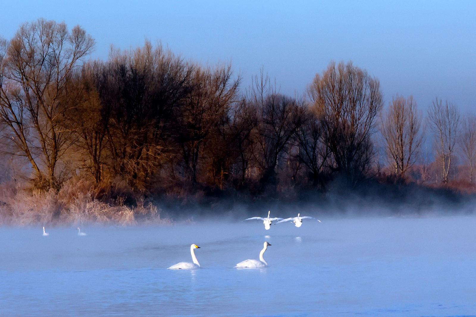近日,朝阳市双塔区大凌河下游晨雾弥漫,诸多鸟儿翔集活跃,在冬日的暖阳下化作了流动的诗行,尽情展示着北国冬日的独特韵律。