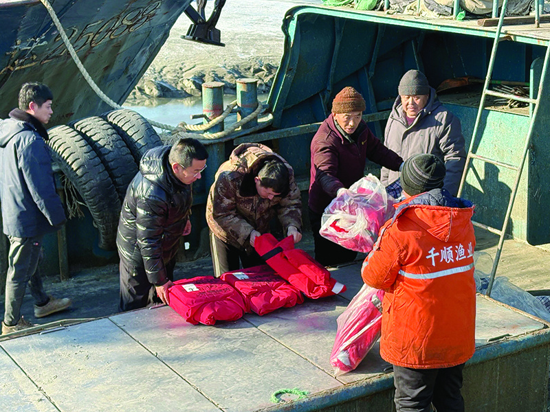 在一艘停靠在港的渔船上,专班人员正在检查船上的救生衣、救生圈及相关安全设施。“要看救生衣上的日期是不是在有效期内,过期的救生衣里面材料老化,浮力不足,就不能用了;救生圈上标有船号、船籍,要看是否跟这条船信息相符……”对于日常渔船管控相关工作,已经驻扎码头两年多的小甸子镇机关干部顾师铭烂熟于心。