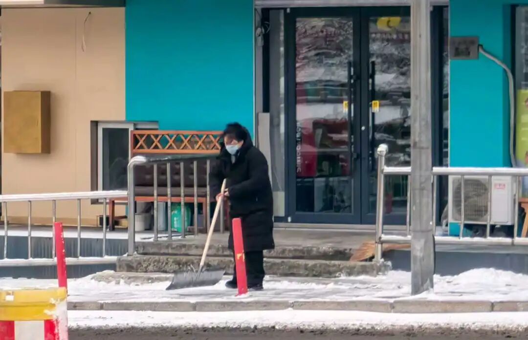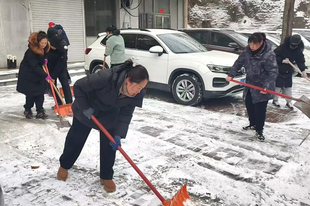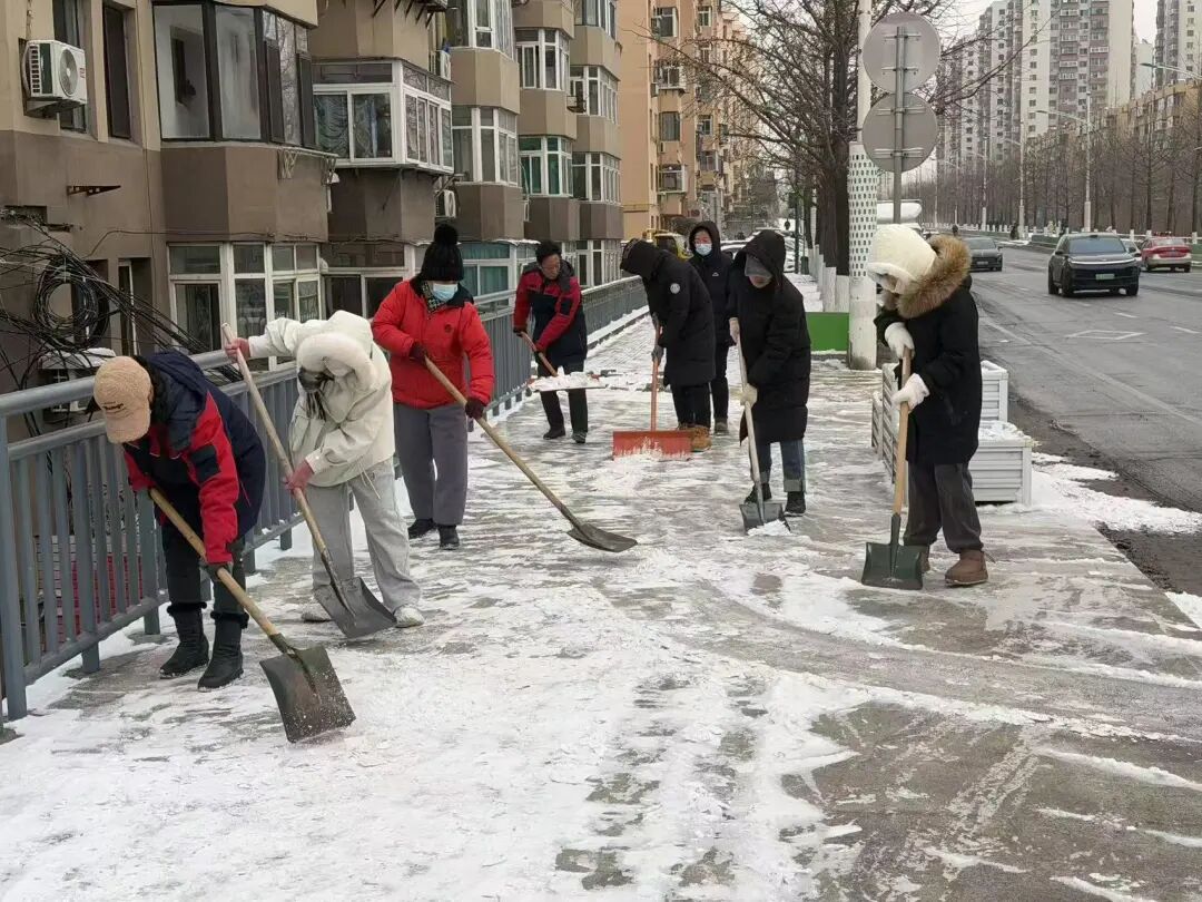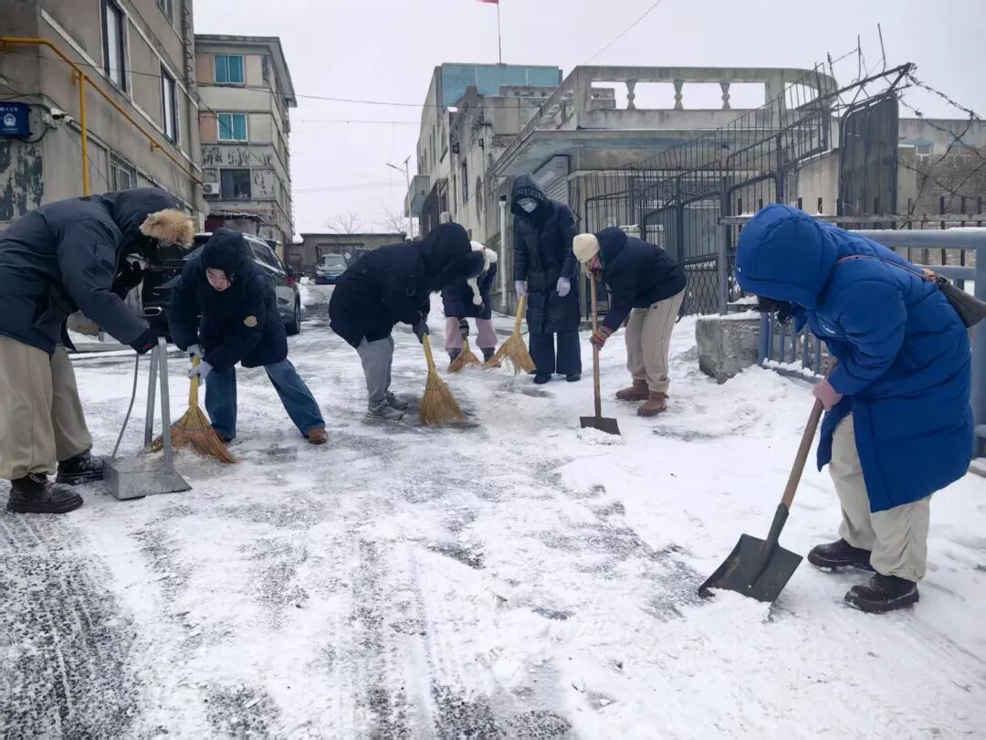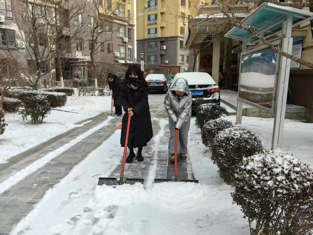 兴区纤维街道黄海社区工作人员与居民志愿者自发清理居民小区积雪,营造干净、整洁、安全的生活环境。