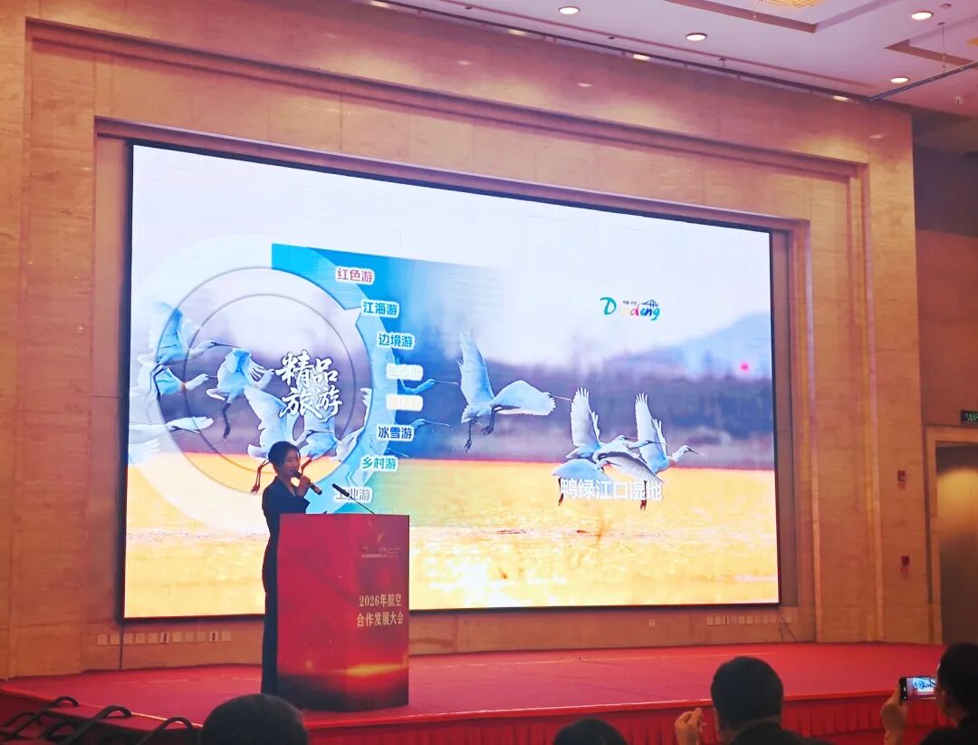 1月13日,“创新发展新起点 枢纽建设启征程”2026年航空合作发展大会宣传推介会在丹东福瑞德酒店举行。来自全国近40家国内航空公司,省内部分城市文旅部门,同程、携程2家OTA(在线旅游酒店平台)齐聚一堂,丹东市文旅广电局在这场盛会上进行了精彩推介,全方位展示城市文旅魅力与优质营商环境,深化多方合作共识。