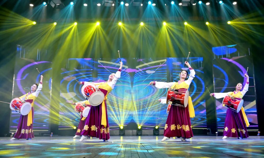 舞蹈《三鼓迎春》更是将展演推向高潮,舞者们手持鼓棒敲响三面彩鼓,以刚劲有力的舞姿、灵动多变的鼓点,将朝鲜族舞蹈的洒脱与新春佳节的喜悦尽情释放,鼓点与舞步呼应,喜庆与祝福交融,每一个动作都传递着对新年的美好期许。