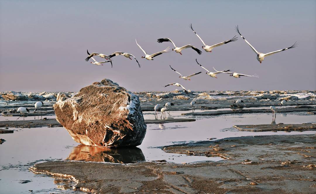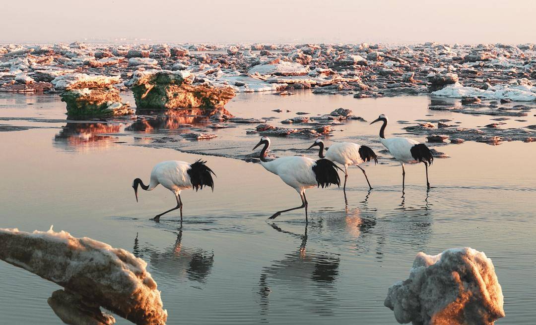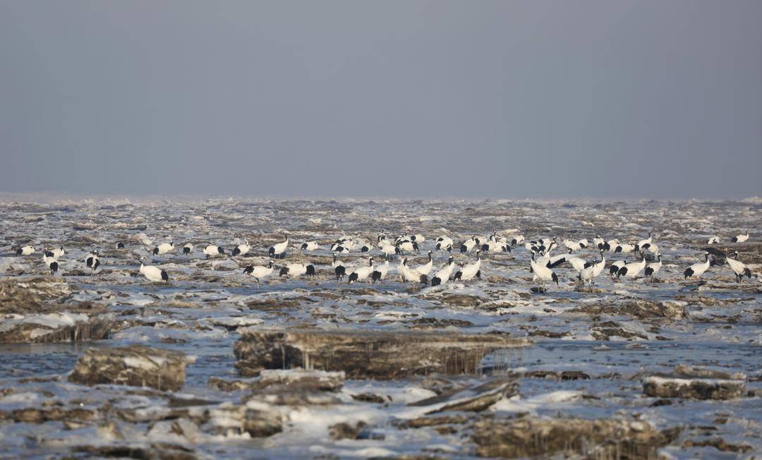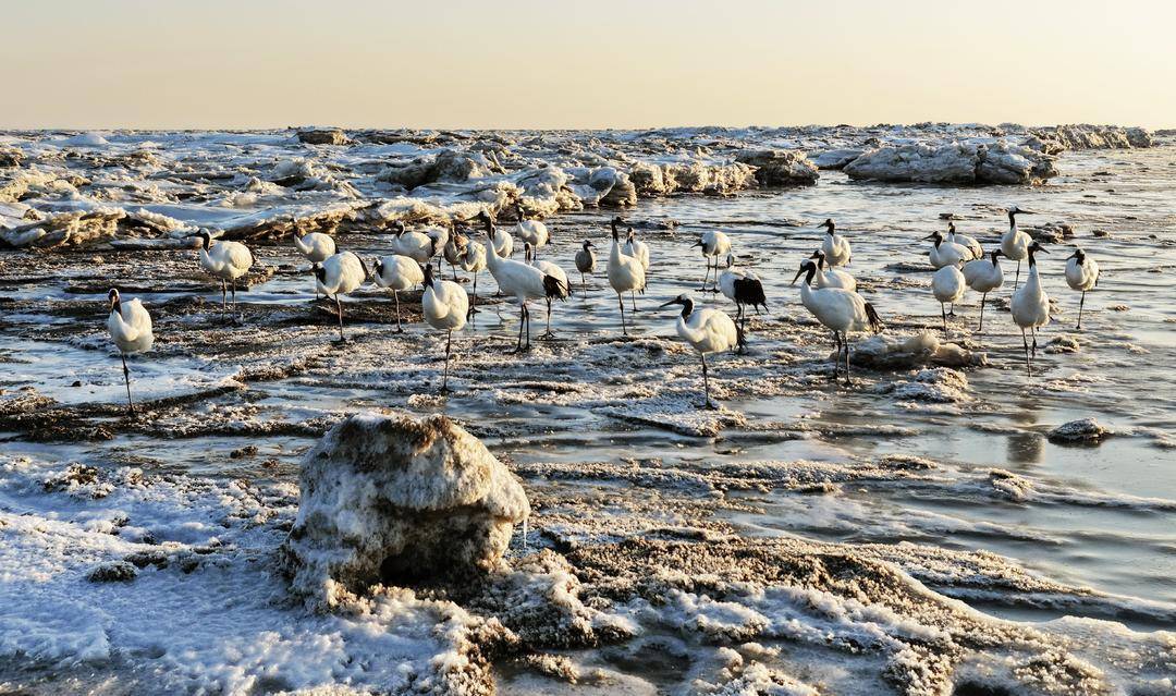辽河口湿地是我国暖温带最完整、广阔的湿地生态系统之一,也是东亚—澳大利西亚候鸟迁徙路线的关键补给站。此前,丹顶鹤部分种群在此越冬,其余四种鹤类仅深秋短暂停留后南飞,越冬较少。据统计,去年同期观测到丹顶鹤187只,白鹤3只、白头鹤6只、灰鹤7只,此次监测到的五种鹤类数量较去年同期(除白鹤外)均有不同程度增长,五种鹤类集中在辽河口湿地越冬较为少见。