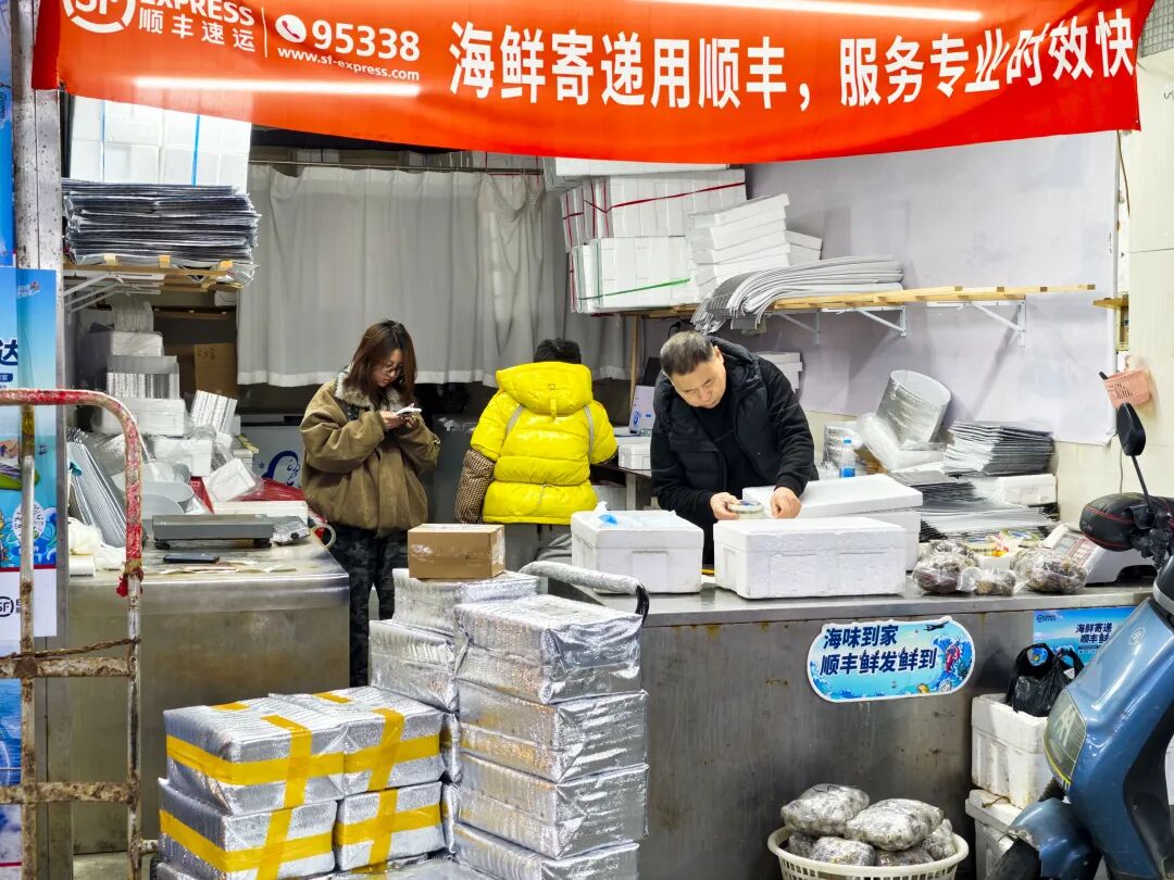 市民和游客络绎不绝,精心挑选着心仪的海鲜,或是为自家年夜饭添上一道硬菜,或是打包寄给远方的亲友。