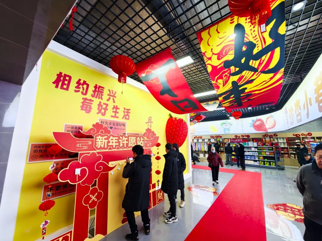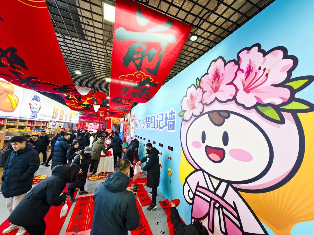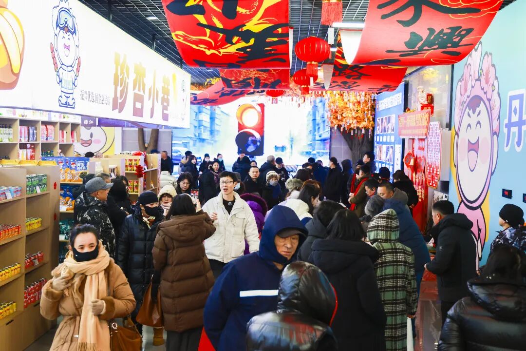 走进市集,满眼尽是喜庆的中国红。“珍杏小巷”里,汇聚本地特色美食、进口食品、服饰文创等各类好物,服饰穿搭、文创潮品、生活好物等分区清晰、货品丰富。