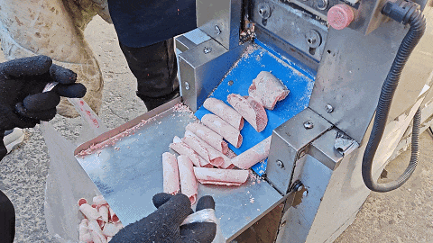 “这都今天早上现杀的羊”“这大羊腿你回家炖汤不鲜啊!”摊主嘴里说着也没停下手里的活儿,一整个冷冻的羊肉卷经过切片机的加工,瞬间变成薄薄的羊肉片,装盒、打包,一气呵成。摊主告诉记者,他家住五龙背,每天的肉都是现杀现卖,哪有集就上哪卖,现在大伙都不大量囤货了,喜欢切片的,现吃现买,他就应顾客需求花几百元置办了切片机器。