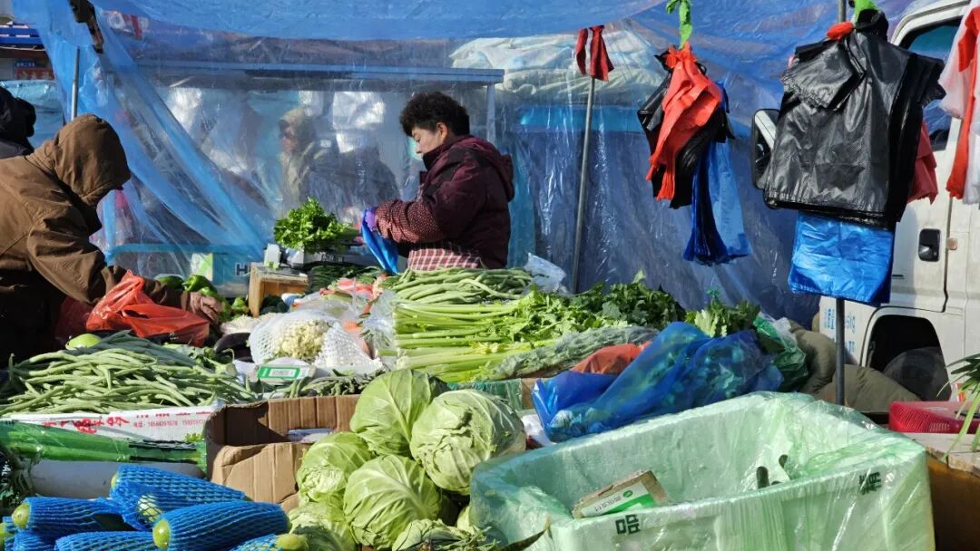 空气中,各种味道交织。刚出笼粘豆包的甜糯、油炸糕与萝卜丝丸子的焦香、海鲜的淡淡腥味儿,共同构成了鲜活的年味儿。