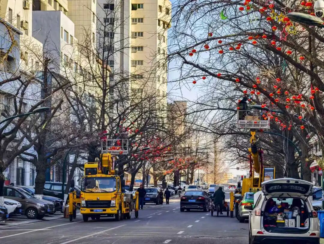 新春启序,年味渐浓。连日来,我市春节亮化工作紧锣密鼓有序推进,工作人员顶寒风、抢进度,将一串串红彤彤的灯笼精心悬挂在城区主次干道的银杏树上,其中六纬路、滨江路、七经街等重点路段尤为亮眼。银杏树枝干缀满中国红,成为冬日里最动人的风景,市民在行走间邂逅满满的年味与温暖。