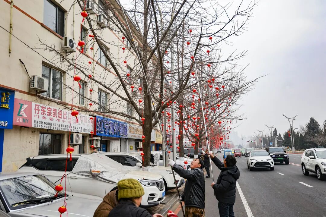 枝干缀满“中国红” 丹东城区年味浓