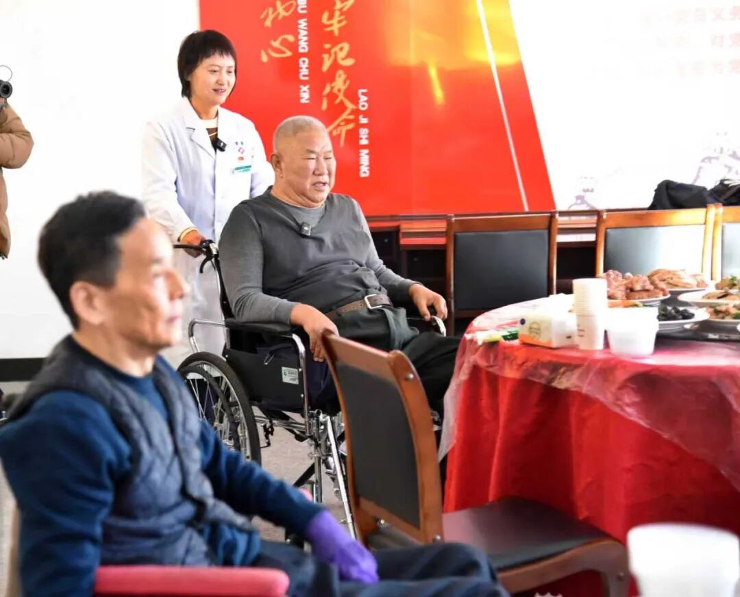 随着饭菜陆续上齐,身体允许的养员被护理人员用轮椅推来,暂时不能活动的由护理人员在房间内喂饭。“他们是为国家、为人民作出贡献的荣誉军人。我们没有和家人过年而陪伴他们,值得,也很骄傲。”护理人员王奕涵说。