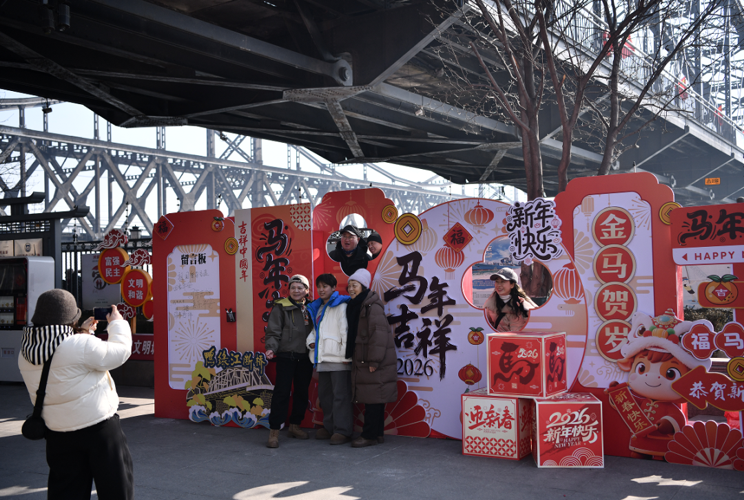 断桥景区入口处,一面巨大的贺新春留言板格外醒目。来自北京的游客王先生郑重写下:“向英雄城市丹东致敬,新春快乐!”他的笔迹旁已有数十条留言,有的表达对志愿军先辈的缅怀,有的抒发对新春的美好祝福。