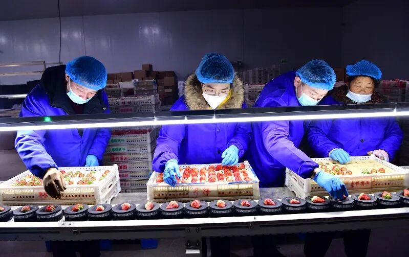 在分选线旁,合作社成员们一边熟练地操作设备,一边感慨科技带来的变化。一位有着多年草莓分拣经验的老师傅告诉记者,过去分草莓全靠眼力和手感,标准难以统一,同一盒草莓难免大小不一、甜度有差。如今,智能设备成了“火眼金睛”,分选标准稳定、客观,大大提升了工作效率和产品标准一致性、稳定性。
