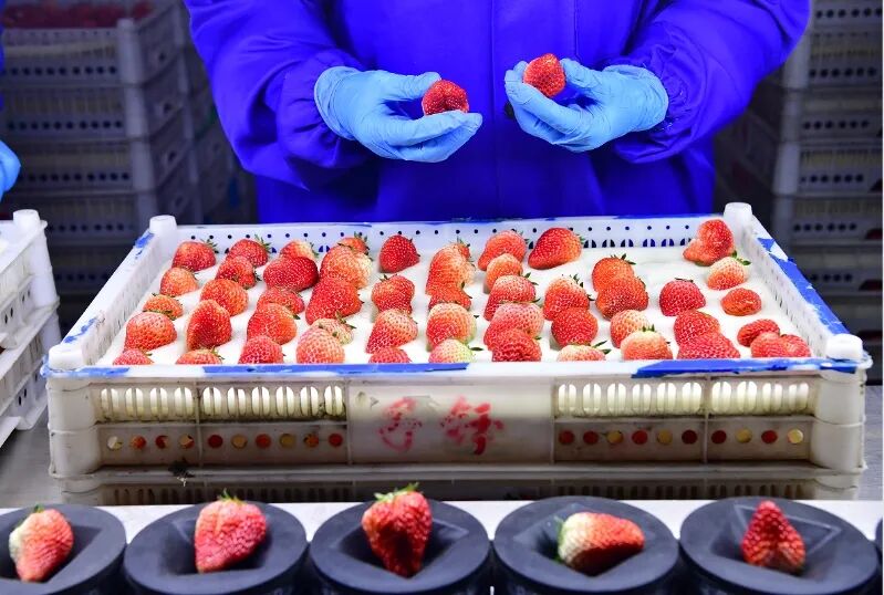 智能分选设备的稳定运行让装在同一个盒子里的草莓实现了“同胞兄弟”般大小一致、口感趋同,确保了出厂草莓的高品质和稳定性,满足了大型商超、电商平台以及高端消费者对产品品质标准化稳定化的强烈需求。合作社的草莓现已成功出口至阿联酋迪拜、新加坡等国际市场。科技赋能夯实了“东港草莓”金字招牌,点亮了这颗百年产业的“莓”好未来。