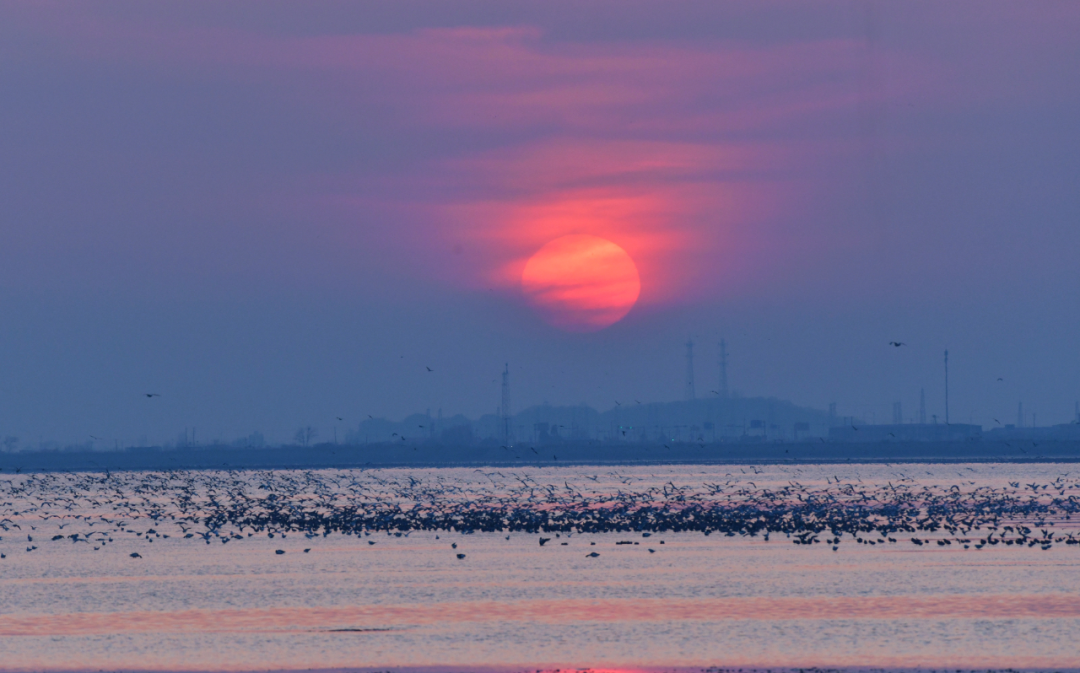 鸭绿江口湿地再现金辉映鸟浪奇观