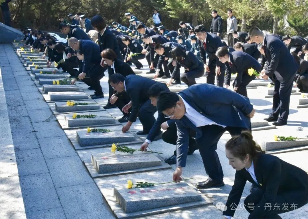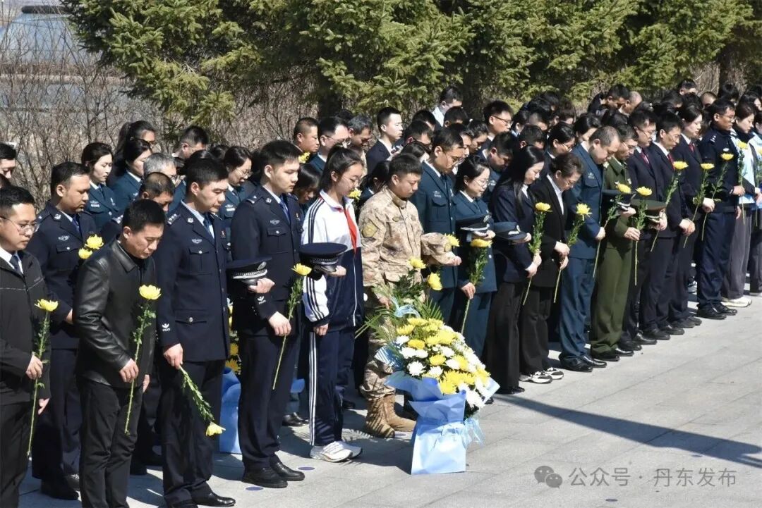 当日上午10时,振安区烈士陵园内松柏凝翠,青山静默,气氛庄严肃穆。全体人员整齐列队,神情凝重。伴随着雄壮的《中华人民共和国国歌》,祭扫仪式正式拉开帷幕,铿锵旋律在陵园上空久久回荡。