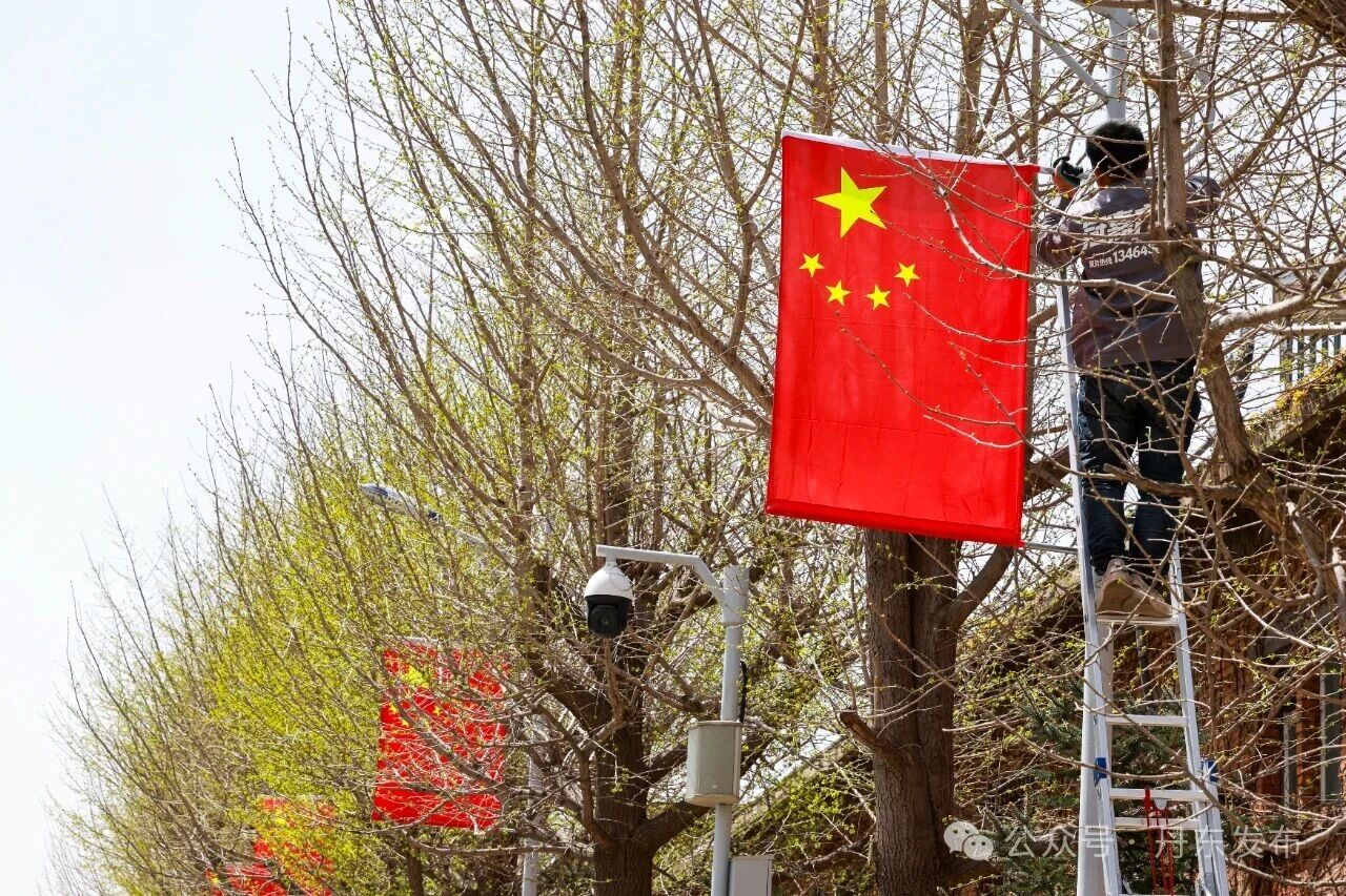 记者在滨江中路看到,工人们将崭新的国旗悬挂在路灯杆两侧,鲜艳的五星红旗与川流不息的城市街景交相辉映,这正是先烈们用生命守护的盛世安宁。