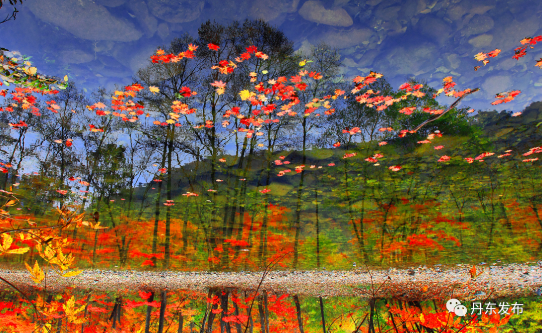 丹东地区的枫叶,与奇峰、怪石、森林、古木、洞峡、幽涧、瀑布、溪水相映生辉,嫣红幻化在山水林间,与险崖峭壁同戏,与瀑布溪水缠绵,美的爽人心肺,美的惊心动魄。