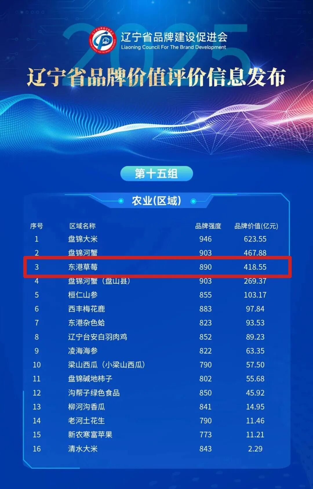 9月10日2025年辽宁省品牌价值评价信息发布“东港草莓”区域品牌价值418.55亿元