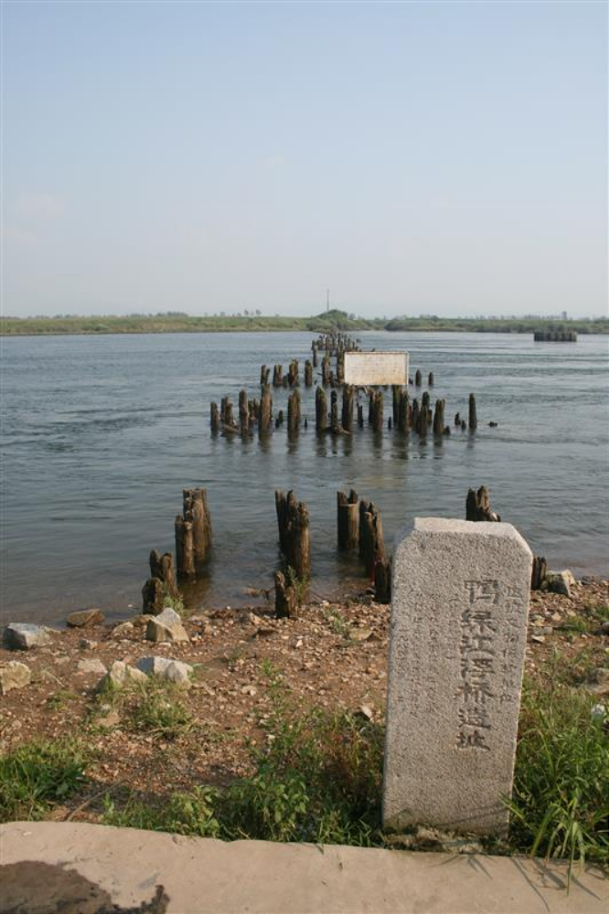这里是丹东市振安区的鸭绿江浮桥遗址,它曾是抗美援朝时期志愿军参战和运送物资的秘密通道。这座木结构列柱式铁路便桥,在落潮时会稍高出水面,而在涨潮时则会沉没于水中,具有很好的隐蔽性,体现了中国人民的智慧。