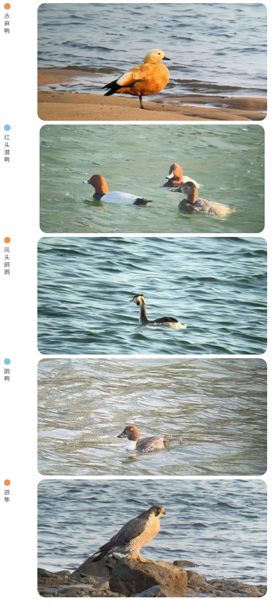 在野保专家的指导下,参与者当天先后观看到了红头潜鸭、赤麻鸭、鹊鸭、凤头䴙䴘、游隼等鸟类。两个多小时的观鸟活动,大家看到了25种鸟。