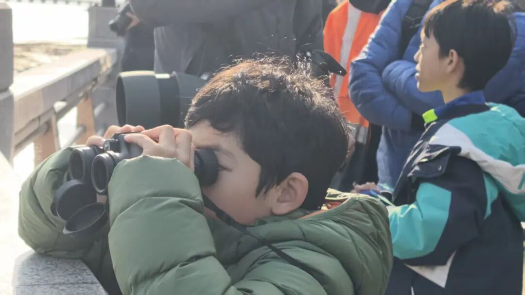 11月22日,“全民观鸟节丹东站”——鸭绿江场在滨江中路月亮岛附近举行,众多市民和沈阳农业大学学生参与了活动。