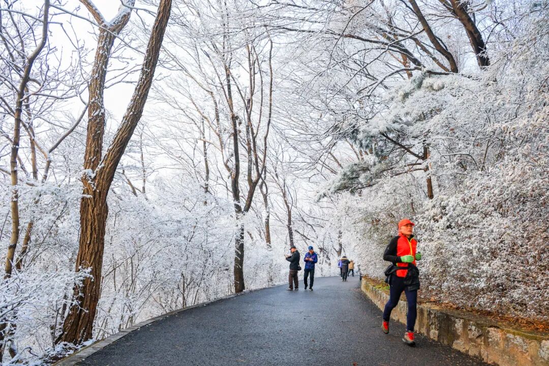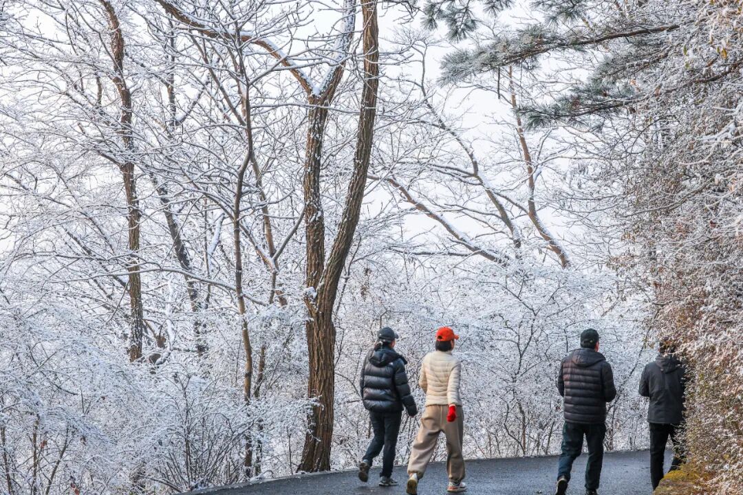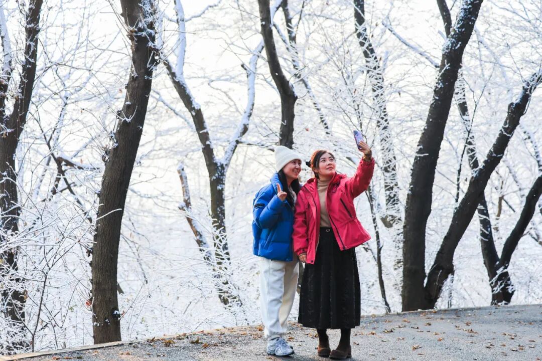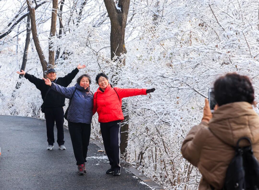 尽管天气寒冷,公园内却人气十足。不少市民专程前来欣赏这一年难遇的景致。摄影爱好者们则架起“长枪短炮”,从不同角度捕捉雪淞的千姿百态,生怕错过任何一个精彩瞬间。