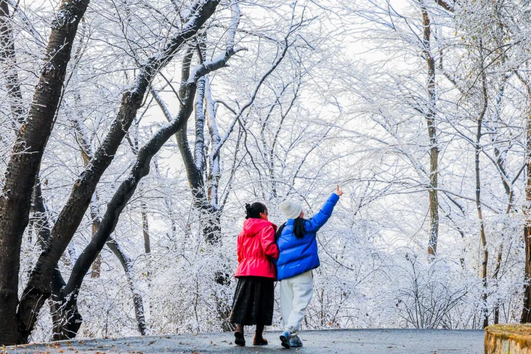 据了解,雪淞是冬季较为罕见的天气现象,通常需要在特定的温度、湿度和风力条件下才能形成。它的出现,为锦江山公园增添了别样的风韵,也正式宣告丹东进入了银装素裹的冬季。