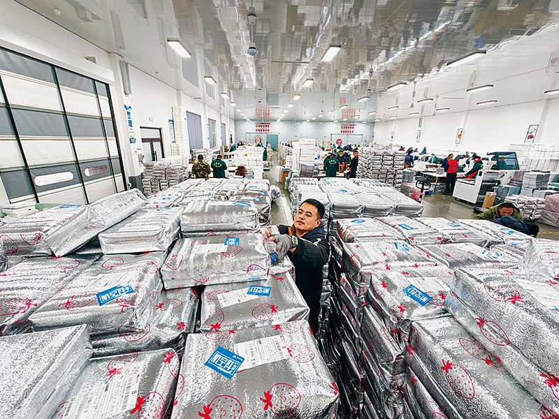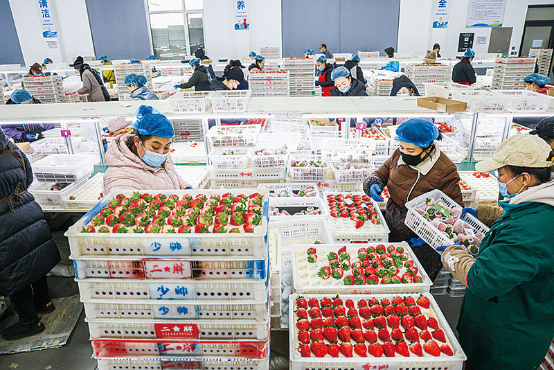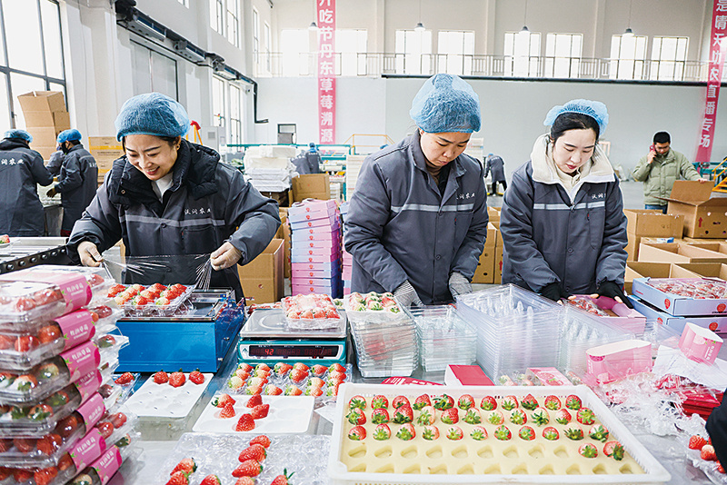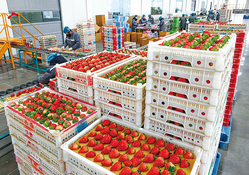 元旦临近,正值草莓大量上市的时节。连日来,在东港市多个草莓分拣包装车间内,待发运的草莓快递箱堆积如山,工人们分工协作,按照果形、大小、色泽等客户定制标准,对新鲜采摘的草莓进行精细化分拣、标准化包装,随后发往全国各地,让全国消费者在新年伊始就能品尝到来自丹东的鲜甜滋味。