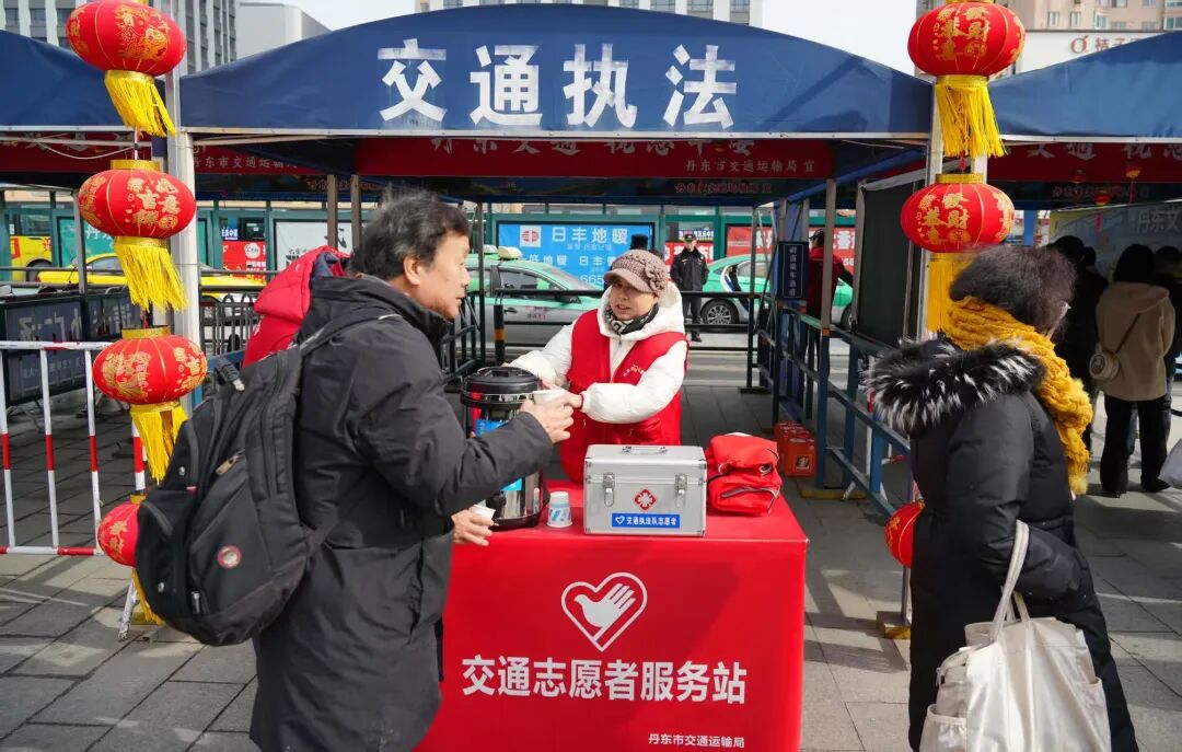 春运高峰期,铁路丹东站客流如织。出站口秩序井然,行李箱滚轮声、车站广播声、温馨提示声交织在一起,勾勒出一幅生动的节日出行图景。人群中,身着红马甲的郑树山志愿服务队队员格外醒目,他们用一次次暖心服务,温暖了旅客的出行路,擦亮了城市文明底色。