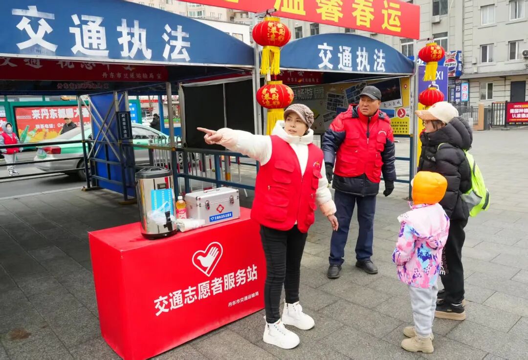 客流密集时段,是队伍最忙碌的时候。队员们每天早早到岗,穿上红马甲,提供交通引导、咨询解答等志愿服务。在自助服务设备前,他们俯下身耐心协助老年旅客操作:“大爷,您点这里,身份证放在这儿就行,不着急。”看到携带大件行李的旅客出站,他们快步上前主动分担;遇到带娃旅客或行动不便的老人,他们细心搀扶、全程护送,每一个举动都温暖贴心。车站周边路口,队员们配合交警开展文明交通引导,一声声“注意安全,绿灯再走”的叮嘱,温暖而有力;出站口内外,他们精准指引路线、热心搬运行李,耐心解答旅客的咨询。“一路帮忙,太暖心了!”面对旅客的感谢,队员们总是笑着说:“这是我们应该做的,出门在外都不容易,能帮一把是一把。”车站工作人员介绍,志愿服务队始终坚持早到岗、晚离岗,熟记列车时刻与换乘信息,服务规范细致。流动的“志愿红”,成为铁路丹东站一道温暖的风景线。